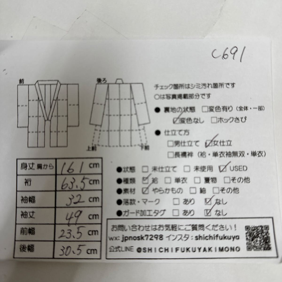 【七福】c691 訪問着 正絹 袷仕立て 金糸 金彩 着物 逸品 身丈 約161cm 裄 約63.5cm