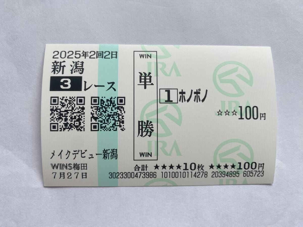 珍名馬券 ほのぼの ホノボノ メイクデビュー新潟 場外単勝馬券