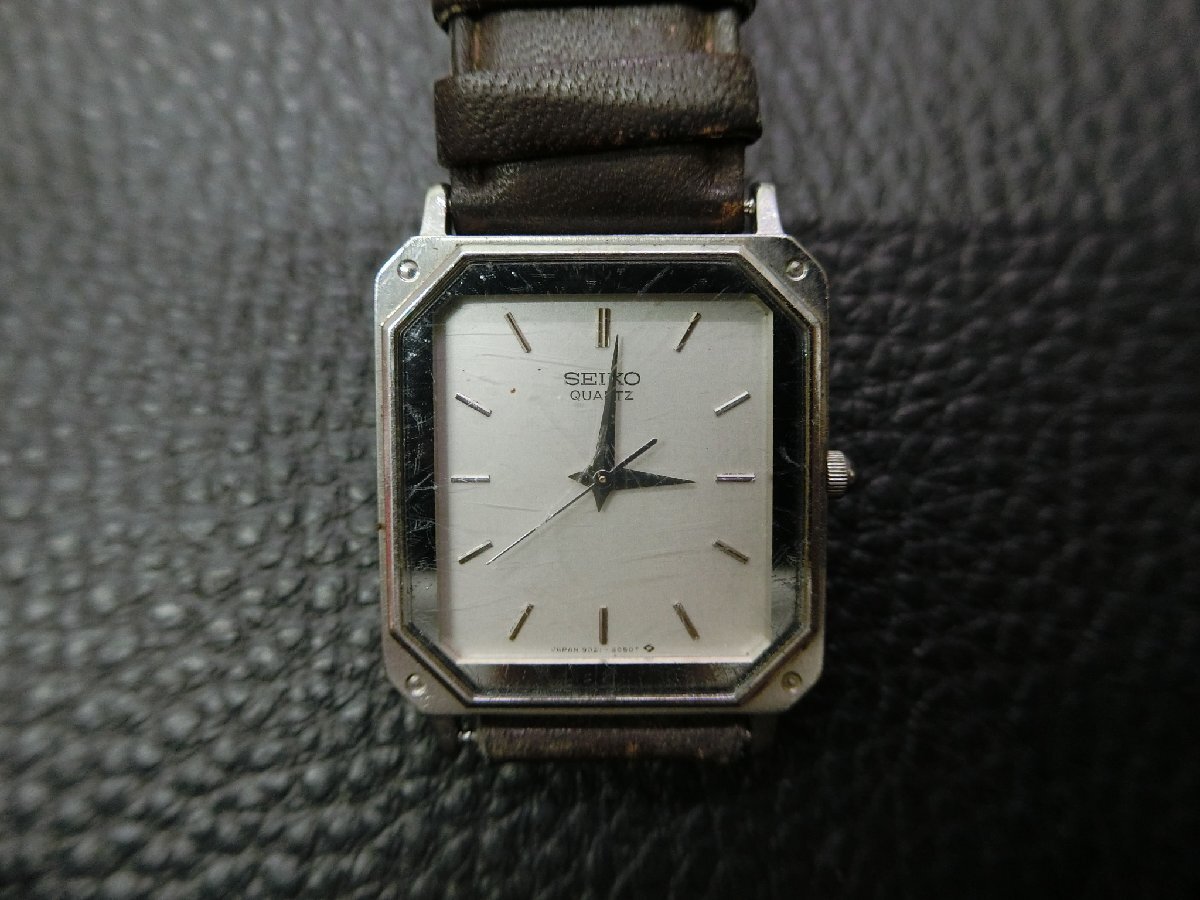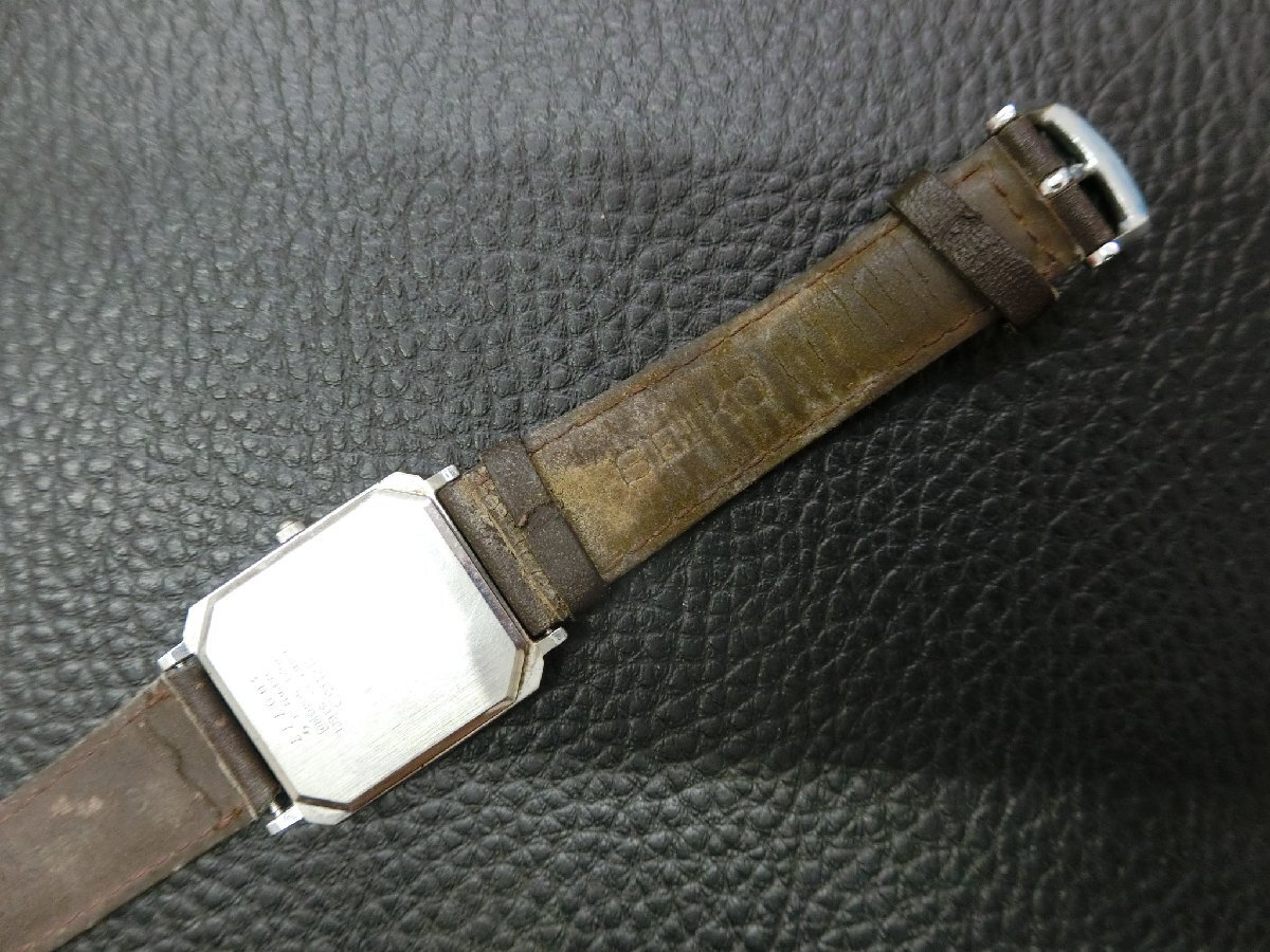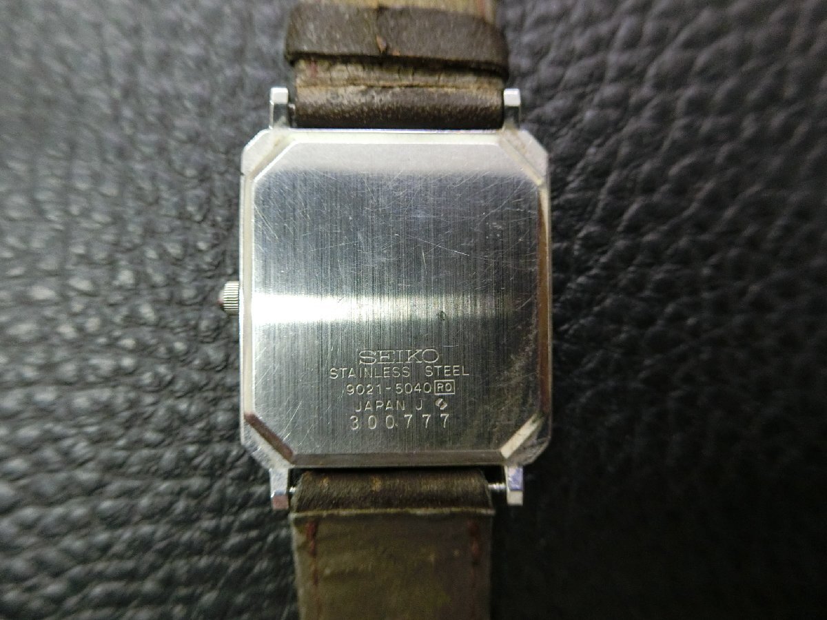 | 商品説明・コメント | セイコー SEIKOの腕時計です。 型番は9021-5040となります。 駆動方式はクォーツになりますが現在では動いておりません。 しかしながら電池交換をして動く保証は出来ません。 サイズは竜頭含まずの横幅が27.1mm、ラグからラグ迄の縦の幅が35.65mm、厚みが5.3mm程度で御座います。 素人計測になりますので御参考迄にして下さい。 今となっては先ず手に入りませんし中々市場に出回る事が有りません。 状態は年式相応では御座いますがベースとしてや部品取り等に使って頂いても良いでしょうし年式相応でそのまま使っても良いかもしれません。 当時物のビンテージに理解の有る方にお勧め致します。 あくまでも部品取りやオーバーホール前提として下さい。 商品の適合や仕様の詳しくは御自身でお調べ頂きます様にお願い致します。 古い物になりますので経年の修理で非オリジナルの部品が使われている事も御座いますので全てに於いてオリジナルを保証する物では御座いません。 写真では御確認頂けない不具合等もある前提で原則ジャンク扱いにて御考慮下さい。 上記の通り、原則瑕疵担保責任はお受け致しませんので御了承下さいます様御願い致します。 上記の条件を御理解頂けない方の入札はお断り致します。 商品状態 | E | 注意事項 | ■ご質問がありましたらQ&A若しくはメール迄宜しくお願い致します。 | ■原則、中古ジャンク扱いの認識を頂ける方・極端に神経質で無い方・身勝手で無い方での御入札お願い致します。 ■例外なく汚れ、割れ、劣化、社外品による補修、油脂類切れ、折れ、腐食、破損、欠損、欠品、色褪せ、錆、機能的な欠陥は有るだろう前提でジャンク扱いでオーバーホールベースのノークレーム、ノーリターンでの取引条件とさせて頂きます。 ■入札の際は、商品説明・内容・写真を良く御確認の上、自己責任に於いて御入札下さい。 ■画像の色は写真の撮影状況により現物と異なる場合が御在います。 その旨を了承戴ける方のみの御入札をお待ち致します。 ■オークション終了から3日以内の御連絡頂けない場合は落札者都合にてキャンセルとさせて頂きます。 その際、yahooより自動的に『非常に悪い』の評価が付きますので御了承下さいませ。 ■商品の発送は入金確認後、4~7日のお時間を頂きます。 ■オークション終了から1週間以内の御入金でお願い致します。 ■新規のID方の悪戯入札防止の為、評価の無い新規の方・評価に著しく不安が在る方の御入札はお断り致します。 新規IDの方でどうしても入札したい方は質問欄より購入の意思を示して頂いた上で御入札下さい。 購入の意思を示さず入札頂きました場合は入札取り消しをさせて頂き今後、弊社商品への閲覧・入札は御断り致します。 ■Seller will not ship internationally. |