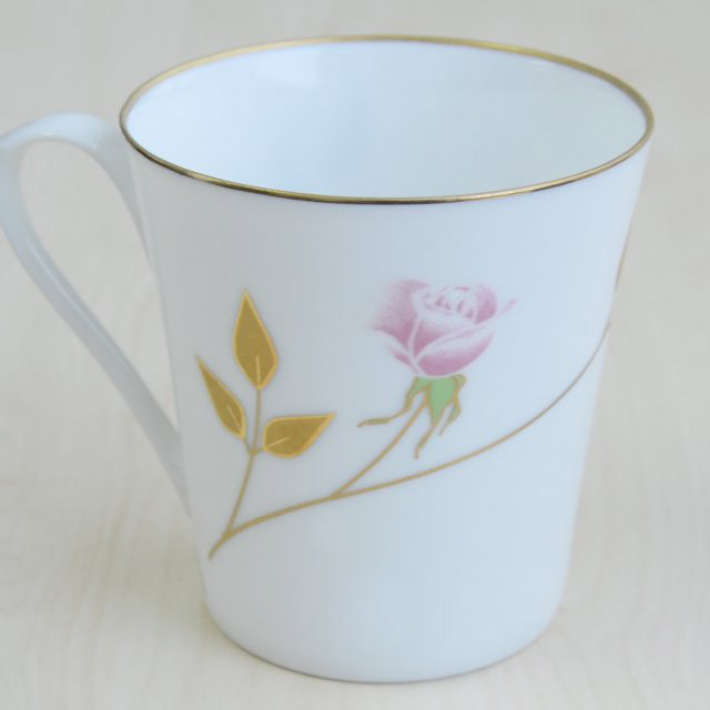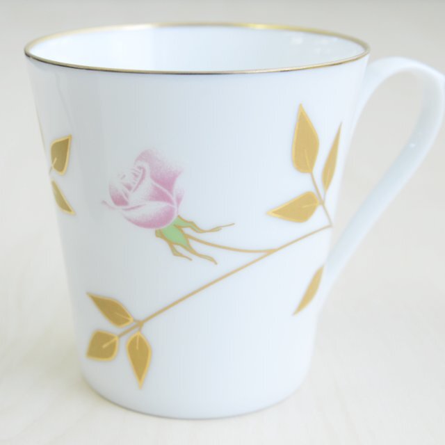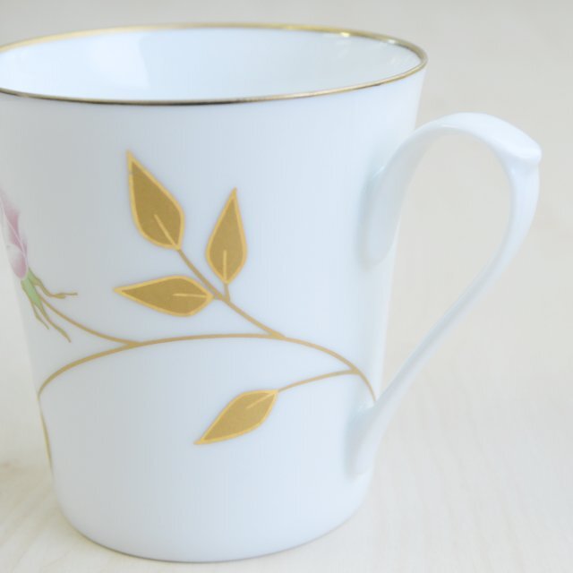 【透き通るような真っ白なカップに薔薇を配した可憐なマグカップ】