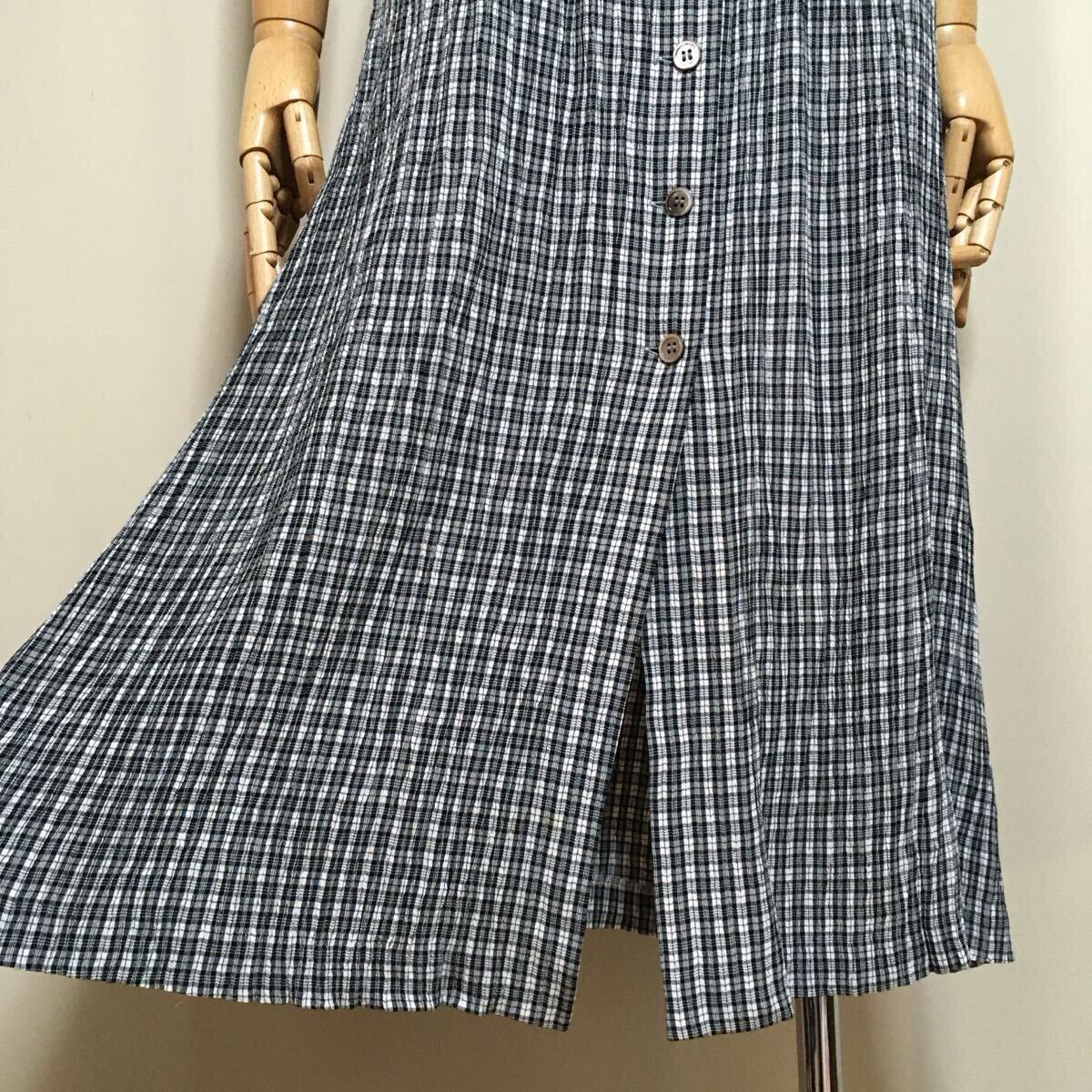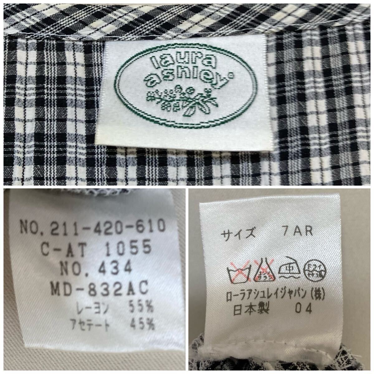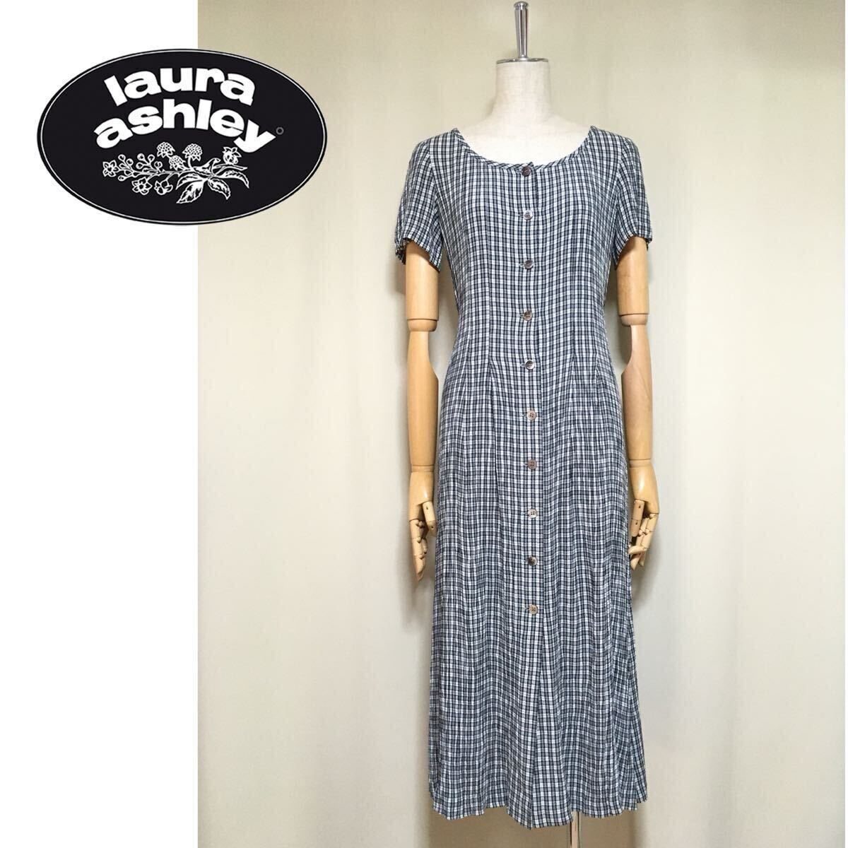 美品◇LAURA ASHLEY ローラアシュレイ ヴィンテージ チェック柄 楊柳素材 半袖 ロングワンピース 7号/Sサイズ ブラック×ホワイト 日本製
