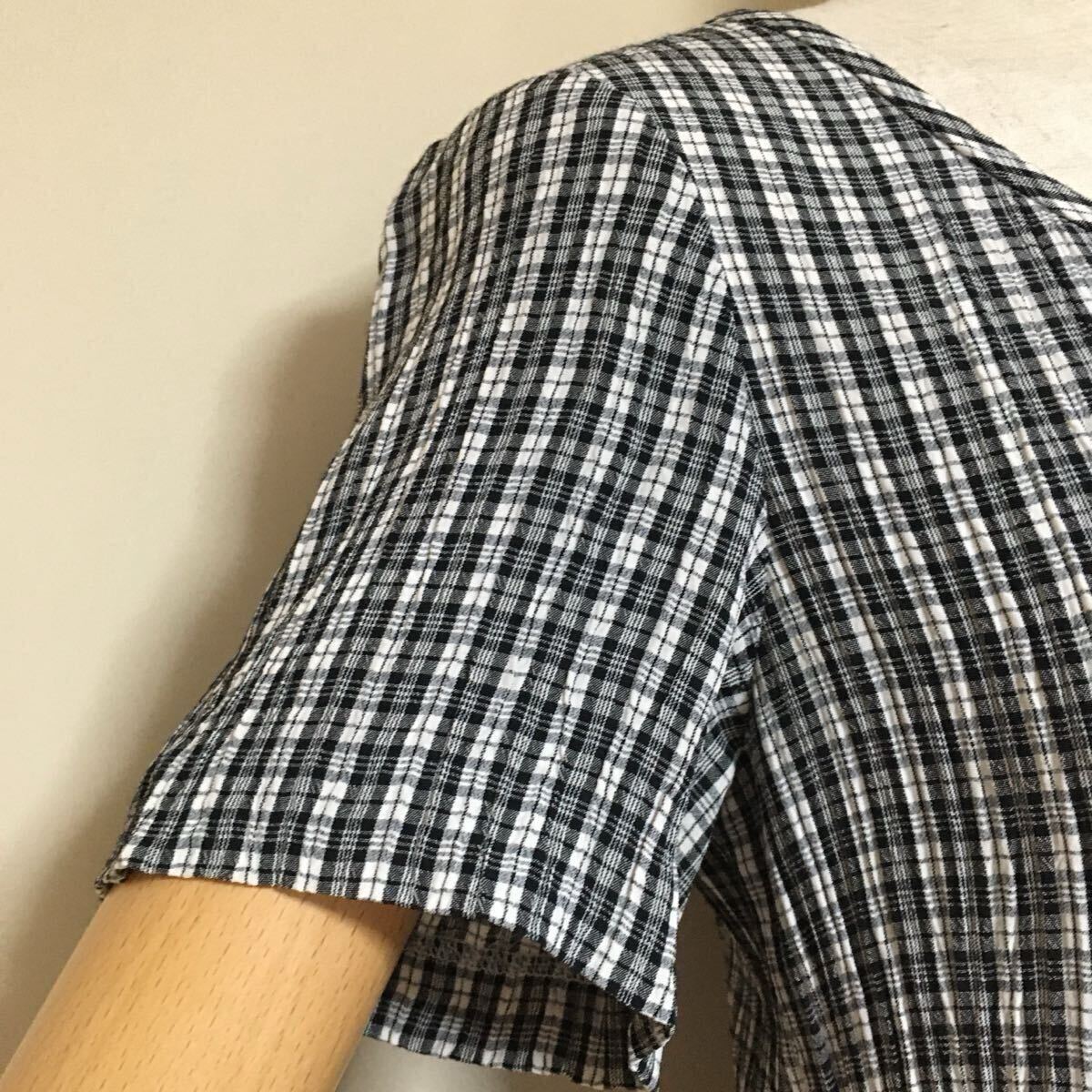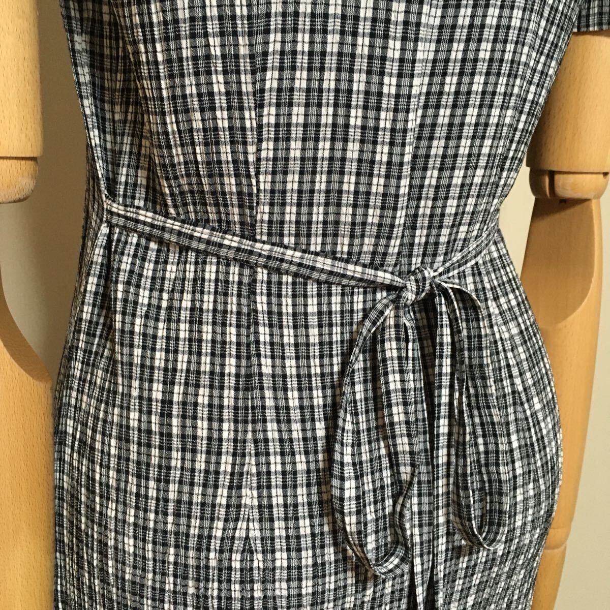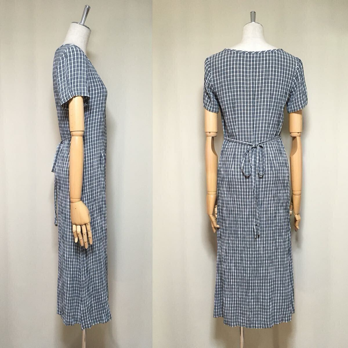 美品◇LAURA ASHLEY ローラアシュレイ ヴィンテージ チェック柄 楊柳素材 半袖 ロングワンピース 7号/Sサイズ ブラック×ホワイト 日本製
