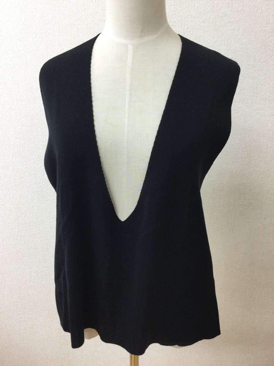 | 管理番号:10^137041 Riche glamour リシェグラマー タグ付き未使用 バッククロス 変型ニットベスト 表示サイズ:M 実寸(参考)