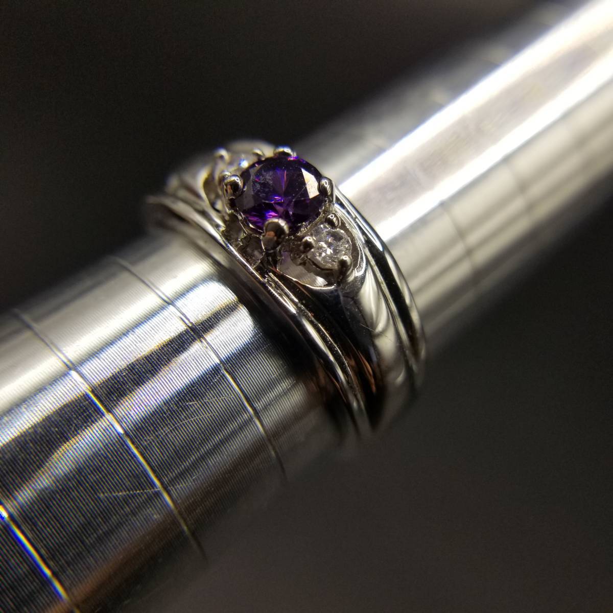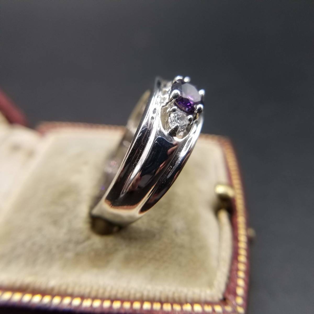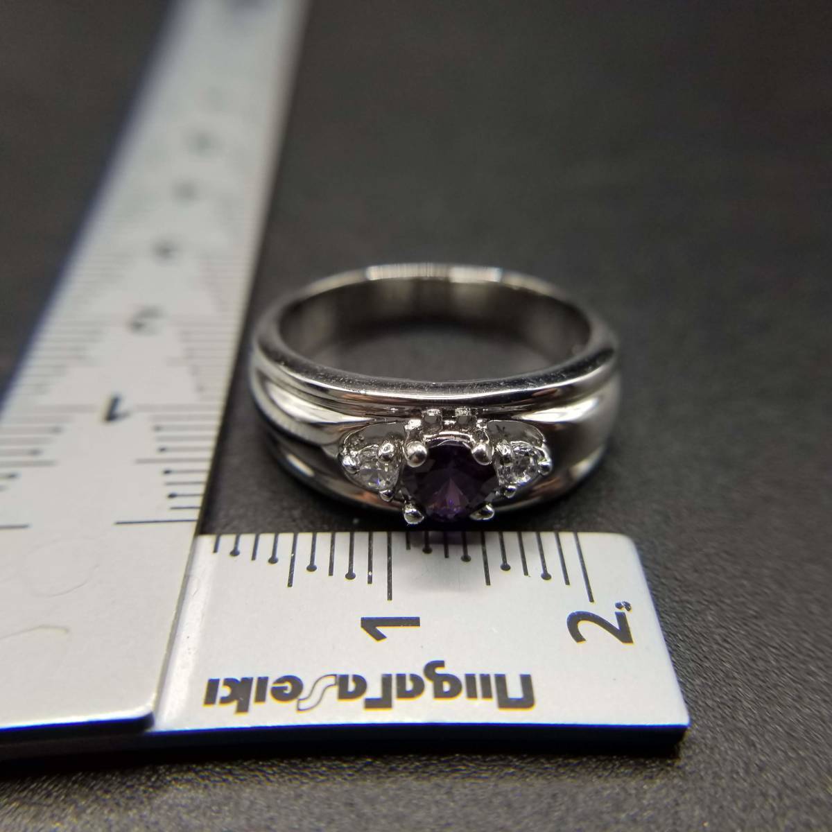 アメジストカラー ラウンド キュービックジルコニア リング 指輪 シルバープレート 煌めき 上品 大きいサイズ YAW