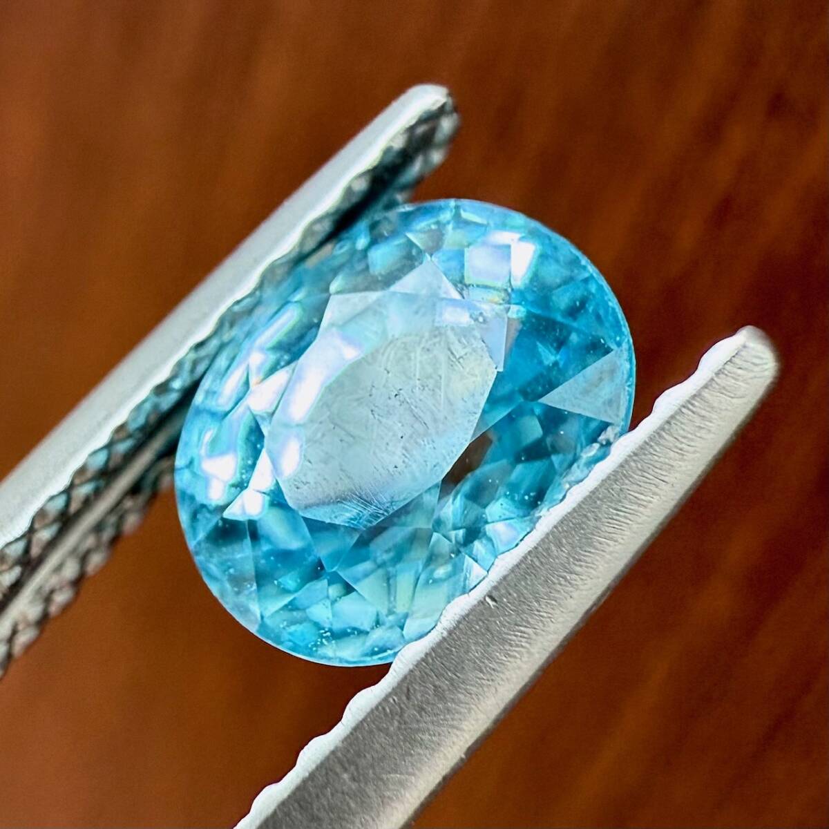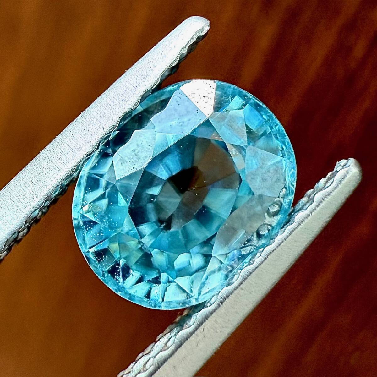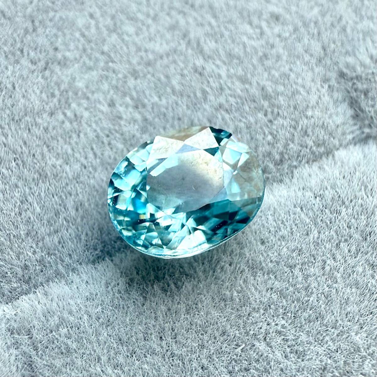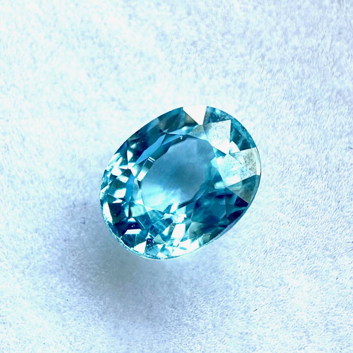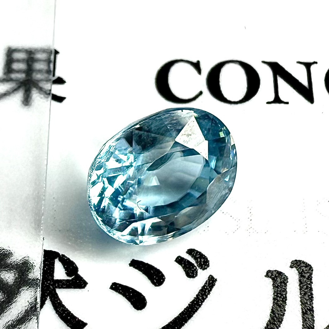 清流のように透き通ったブルージルコン。聖書にも出てくる古い歴史を持つ宝石です。インクリュージョンはほとんどなく、2カラットに迫る大粒。カット面も美しく、艶とテリ(輝き)もあるみずみずしいルースです。