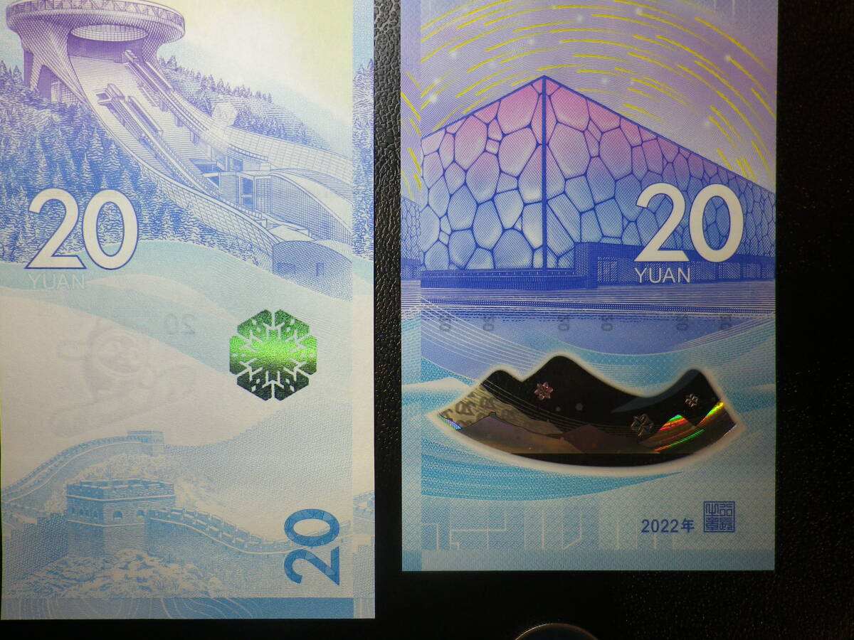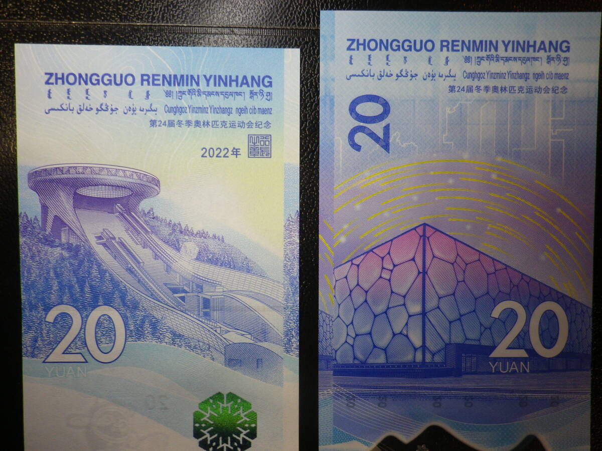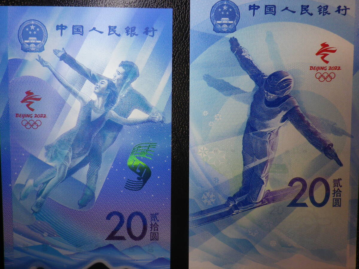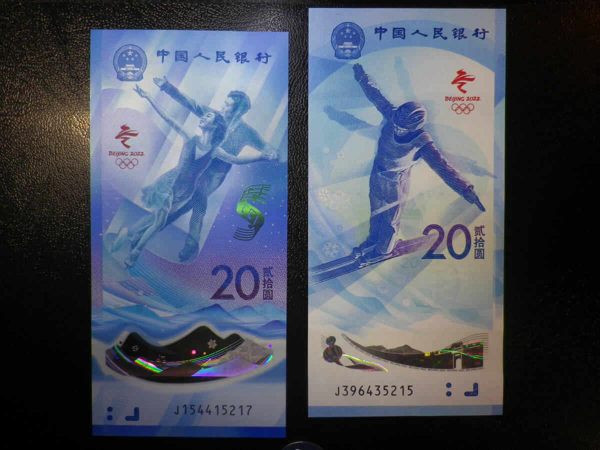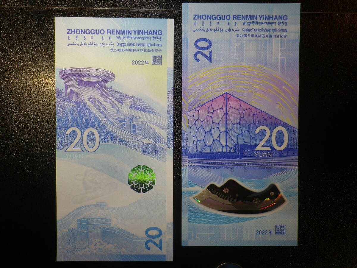中国人民銀行 北京五輪 2022年 記念紙幣(スキージャンプ・アイスダンス) 2種2枚 未使用