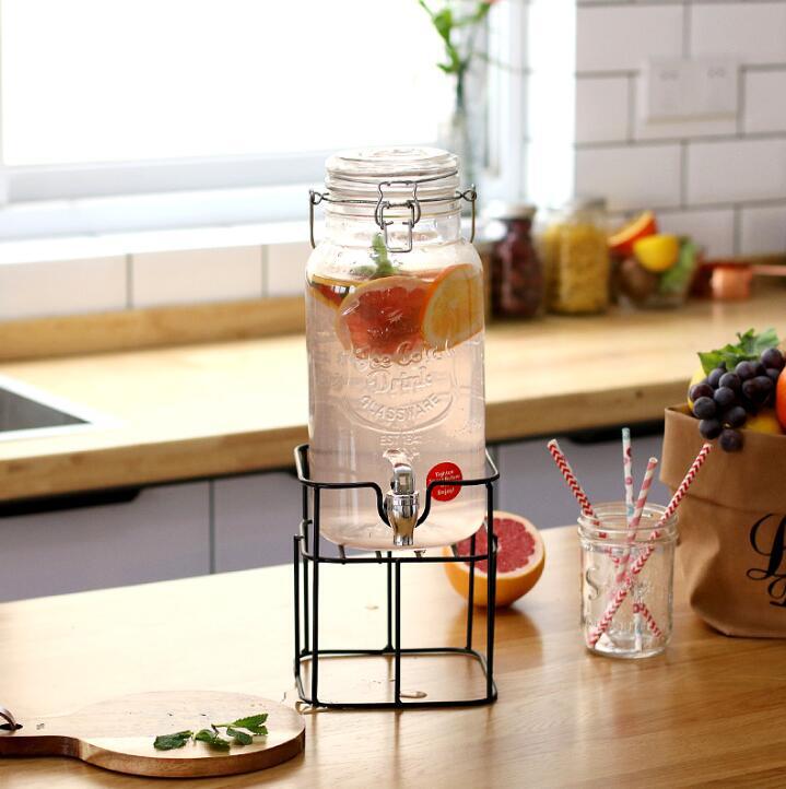 新入荷ドリンクサーバー4L スタンド付 ガラス 蛇口付き 梅酒 ウォーターサーバー ガラス瓶 果実酒 ガラス製 瓶