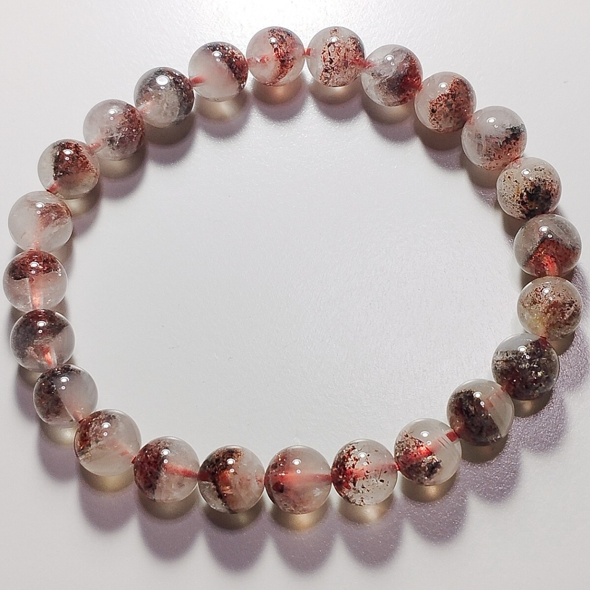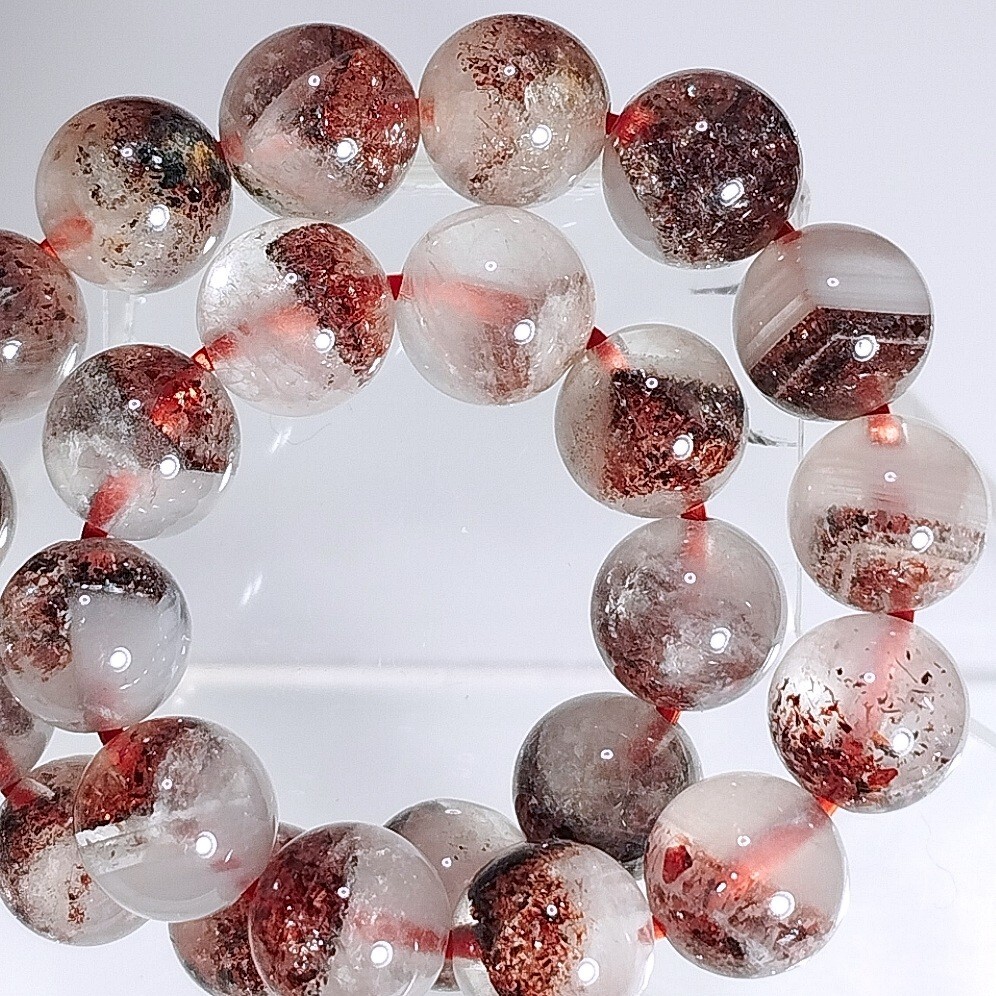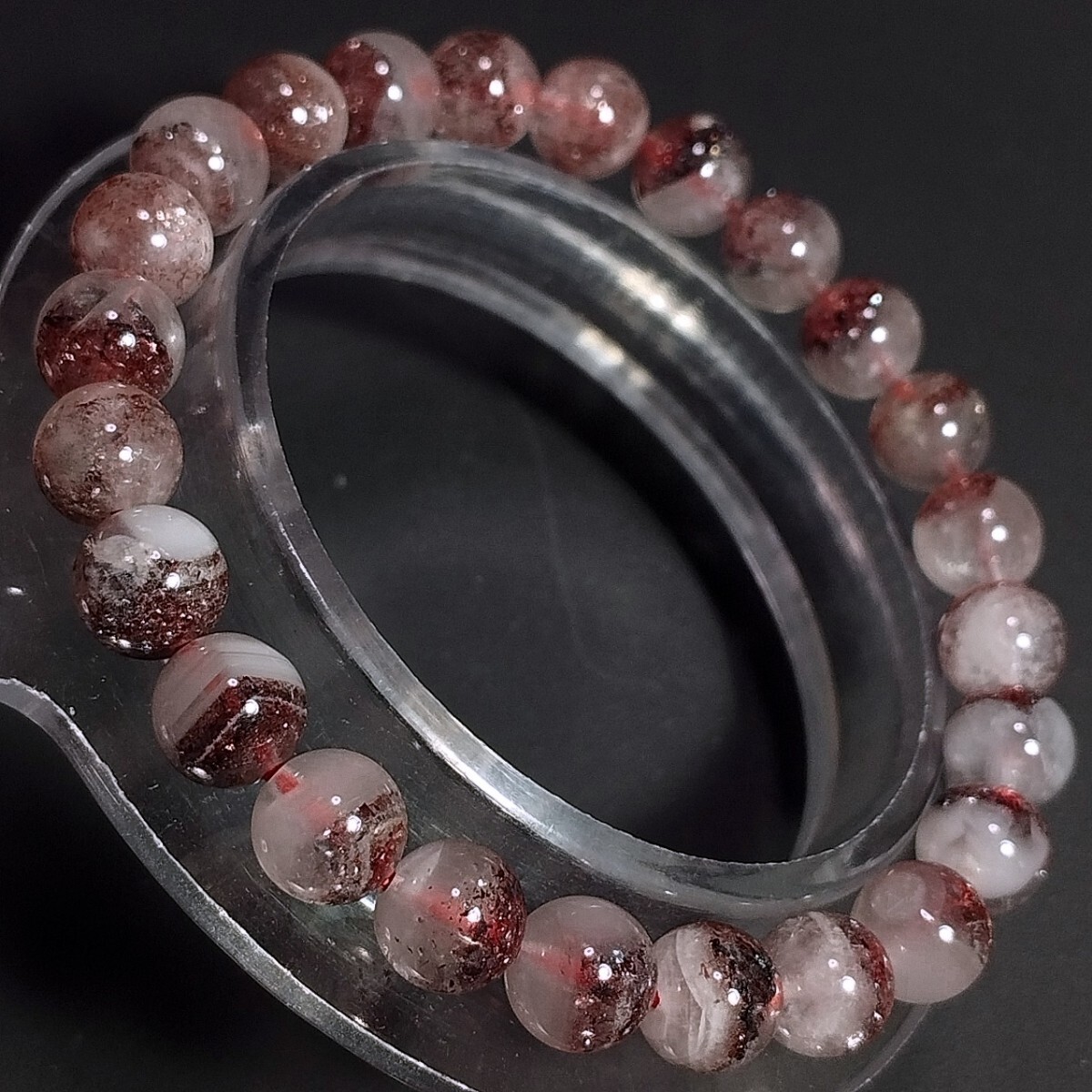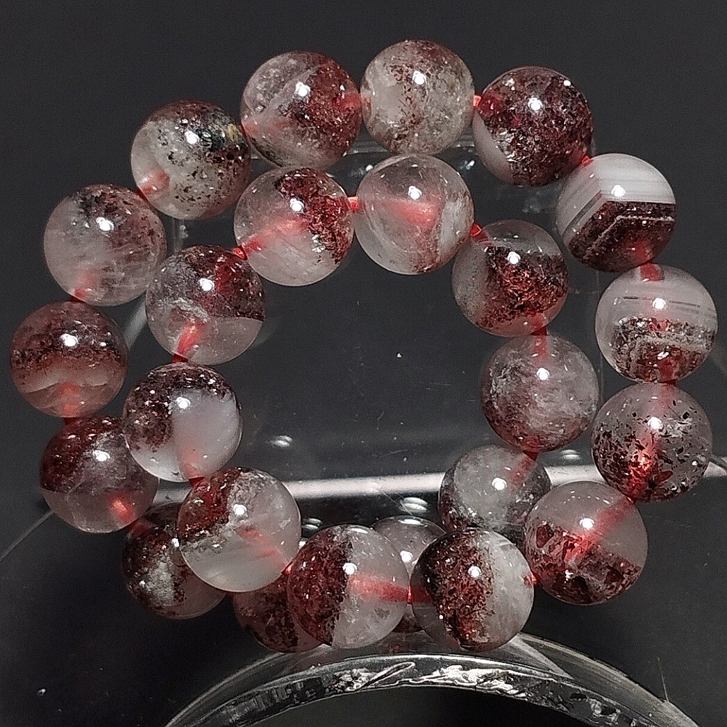 レッドとブラックのレピドクロサイトが内包しているブレスレットです。