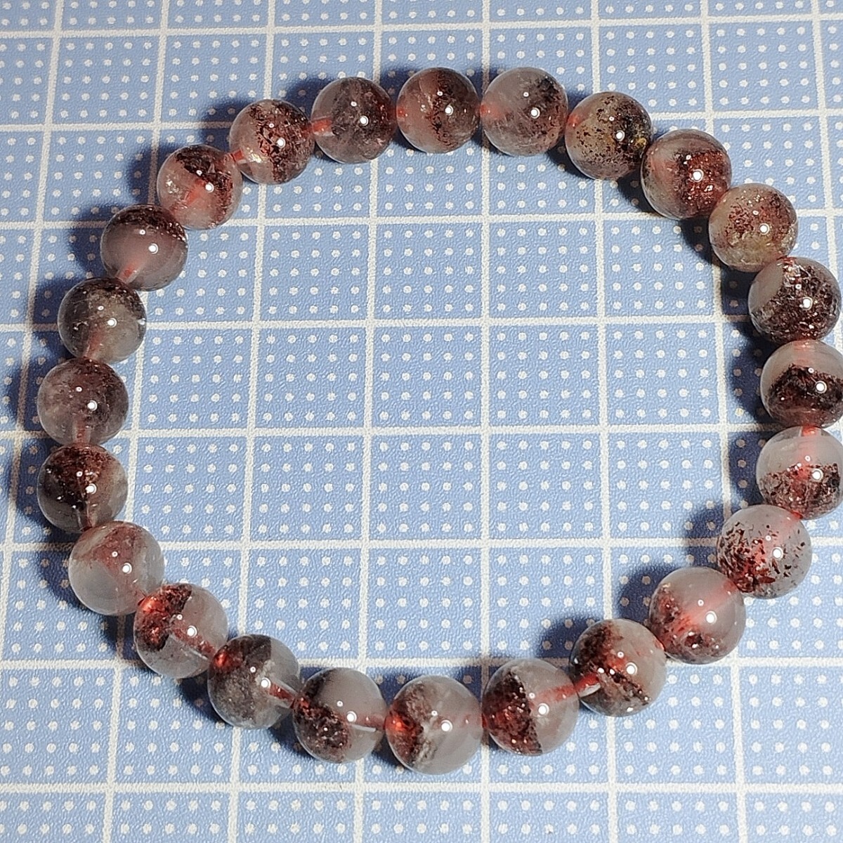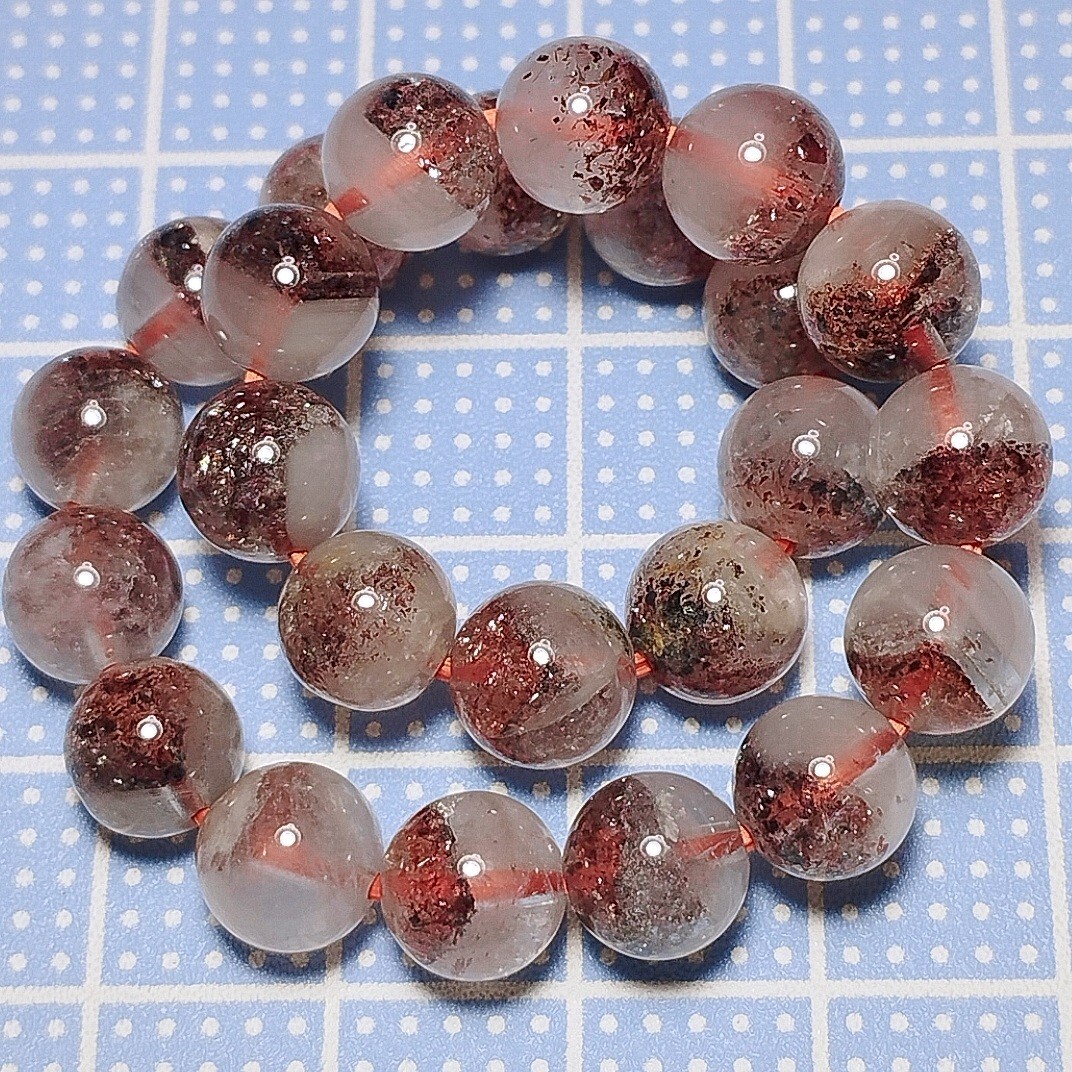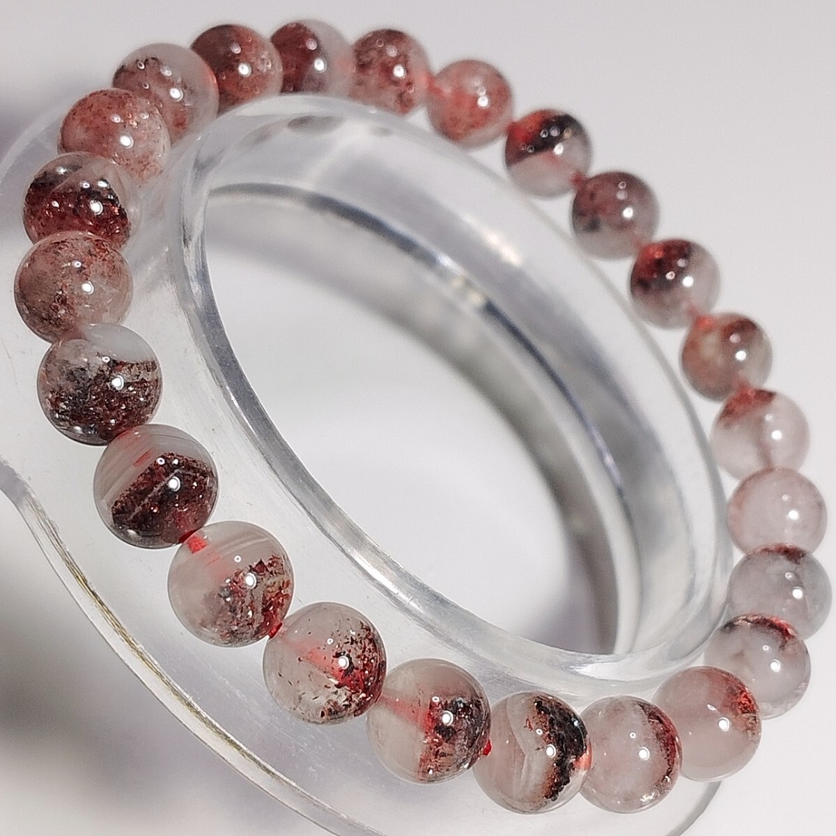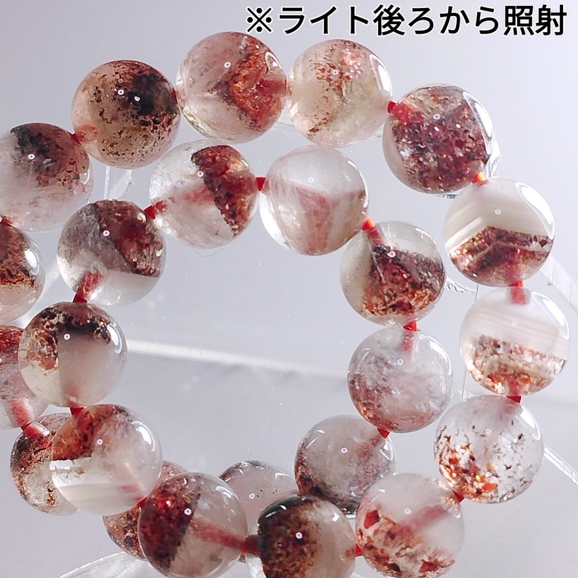レッドとブラックのレピドクロサイトが内包しているブレスレットです。