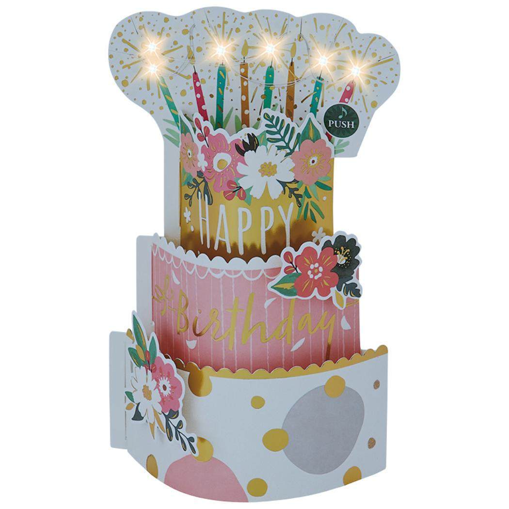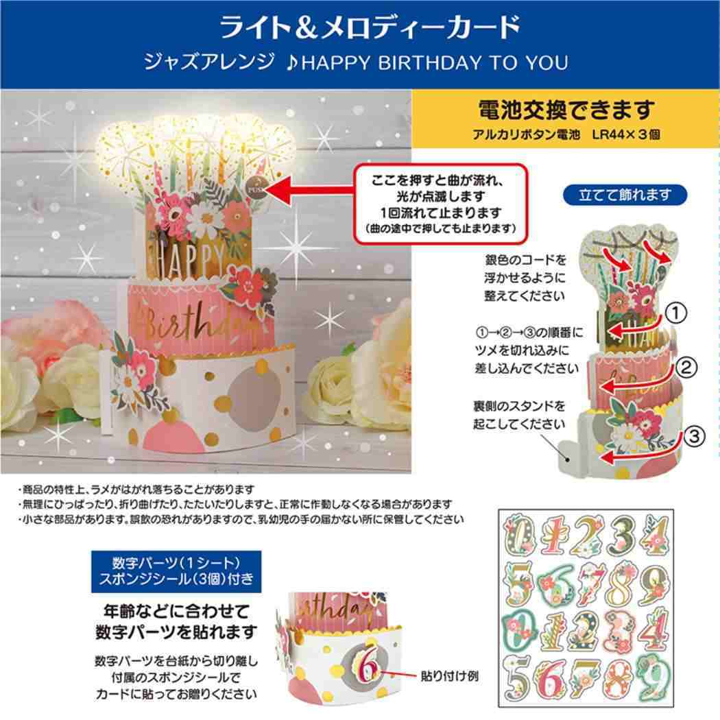 グリーティングカード メロディ JPME61-5 立体ライト&メロディーカード ライト&メロディー 3段ケーキ サンリオ メッセー