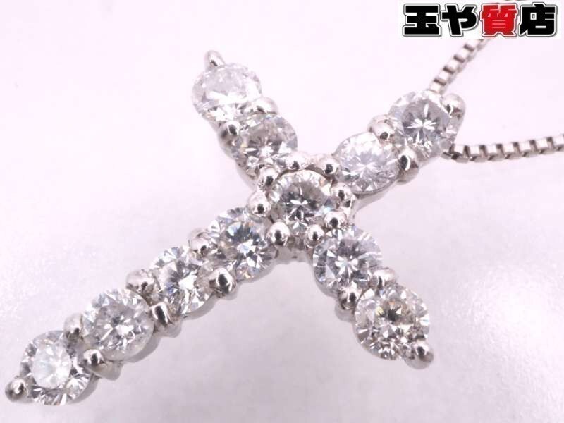 ダイヤ0.30ct クロスペンダント ベネチアンネックレス pt900 pt850 プラチナ