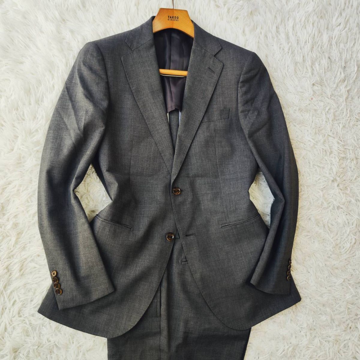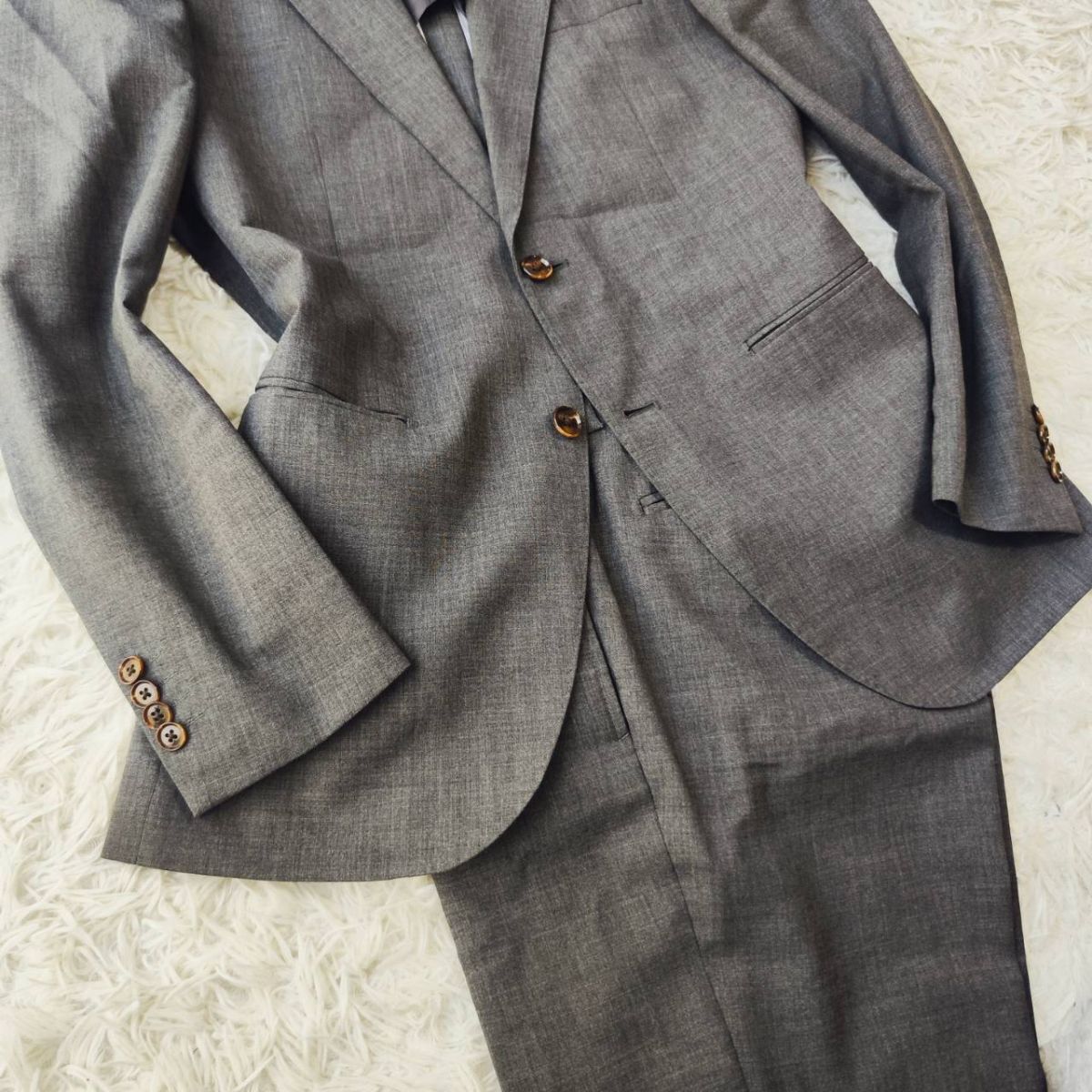 ナノユニバース【上品な着こなし】NANO UNIVERSE スーツ セットアップ テーラードジャケット M グレー 背抜 サイドベンツ 38