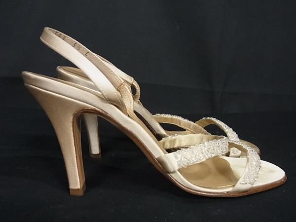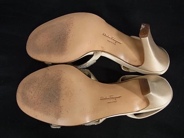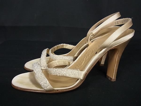 Salvatore Ferragamo フェラガモ サテン ビーズ ヒール サンダル 表記サイズ 5 1/2(約23.0cm) 靴 シューズ アイボリー系 DE6330