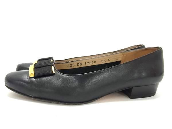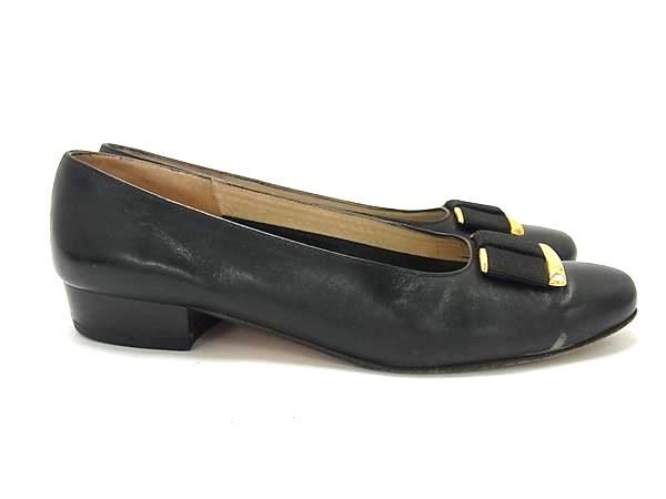 ■美品■ Salvatore Ferragamo フェラガモ レザー パンプス 表記サイズ5 1/2 (約23.0cm) 靴 シューズ レディース ブラック系 DF6819