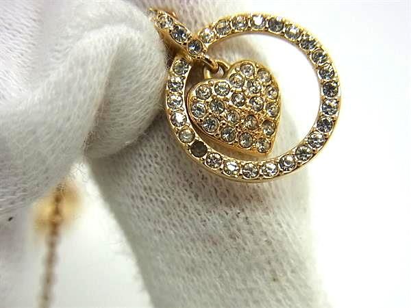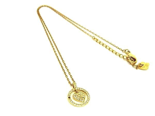 ■美品■ SWAROVSKI スワロフスキー ラインストーン ハート ネックレス ペンダント アクセサリー レディース ゴールド系 DF9379