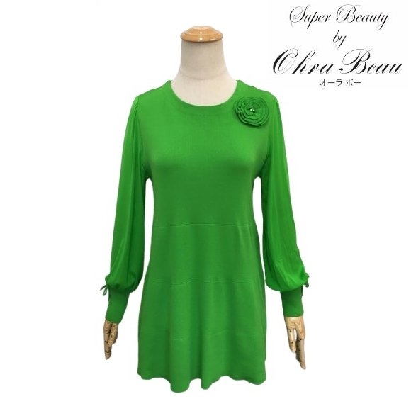 スーパービューティー 42 チュニック 袖パワーネット ニット 2421009 グリーン L 2024年秋冬 オーラボー 大人かわいい服 キレイメ