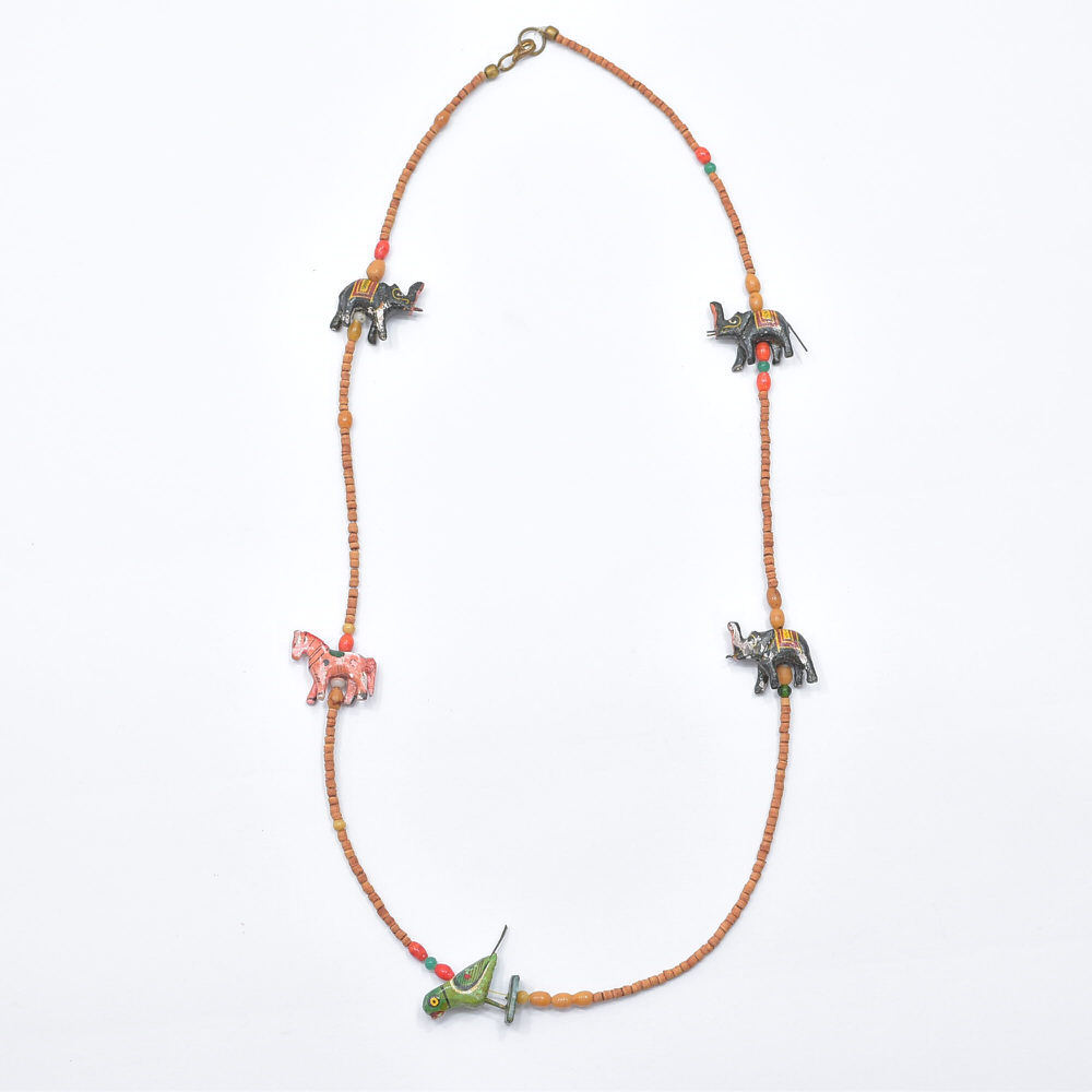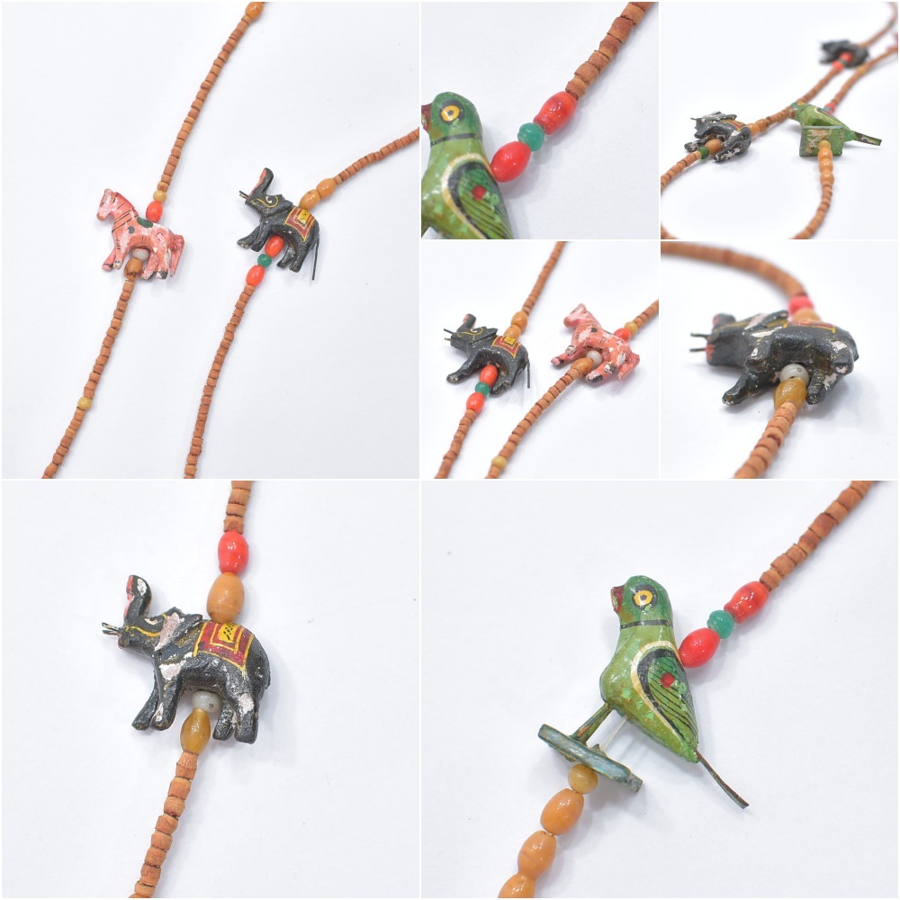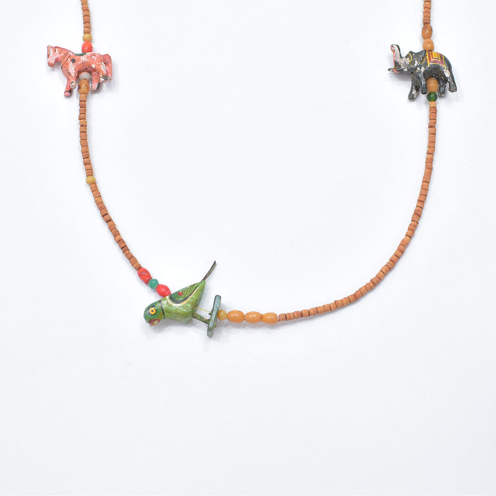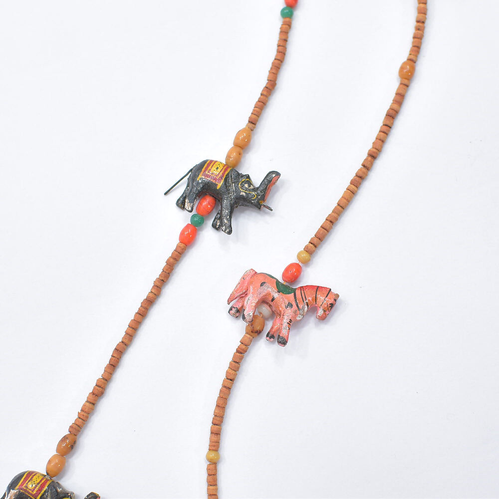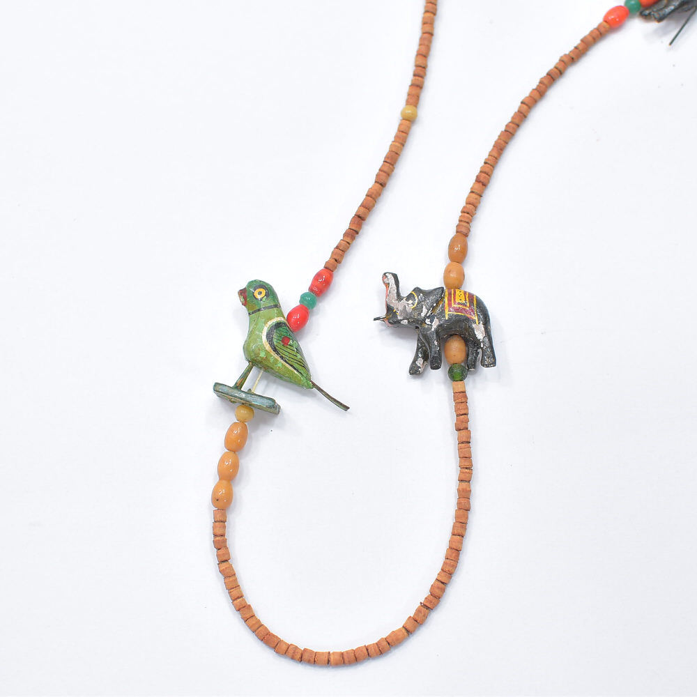 Used エスニックデザイン アニマルモチーフ ウッドビーズ ネックレス フォークアート 民族調 象 馬 鳥 ハンドクラフト ヴィンテージ ビンテージ 古着 ユニセックス