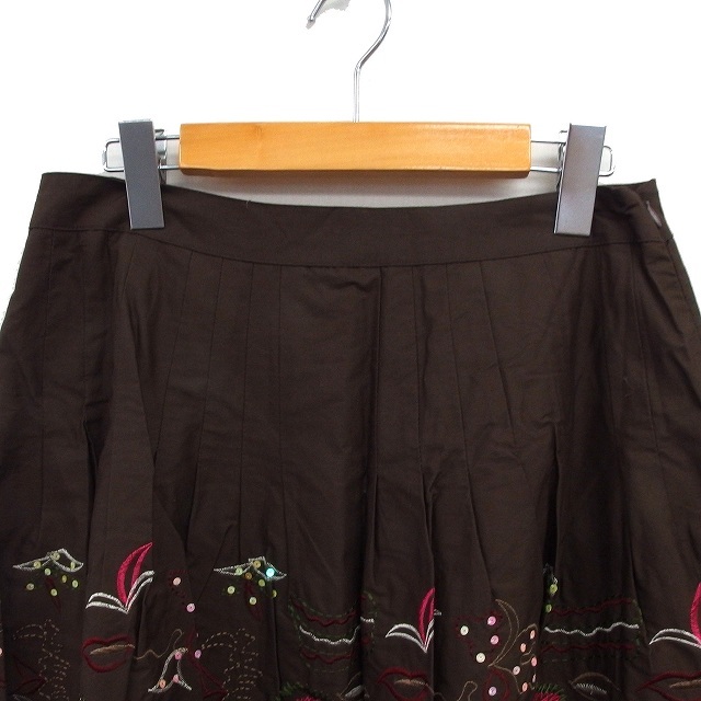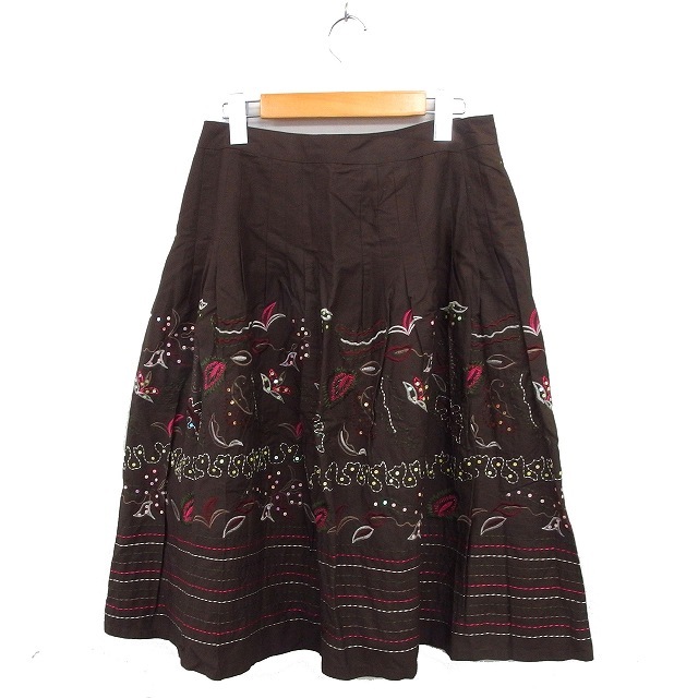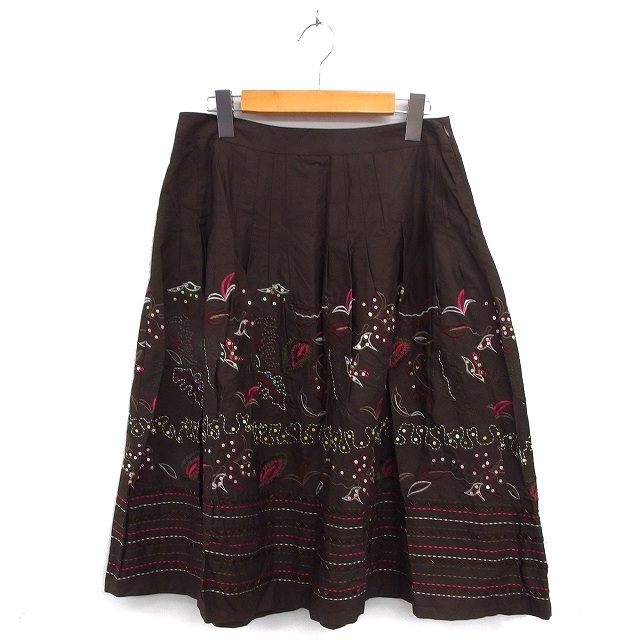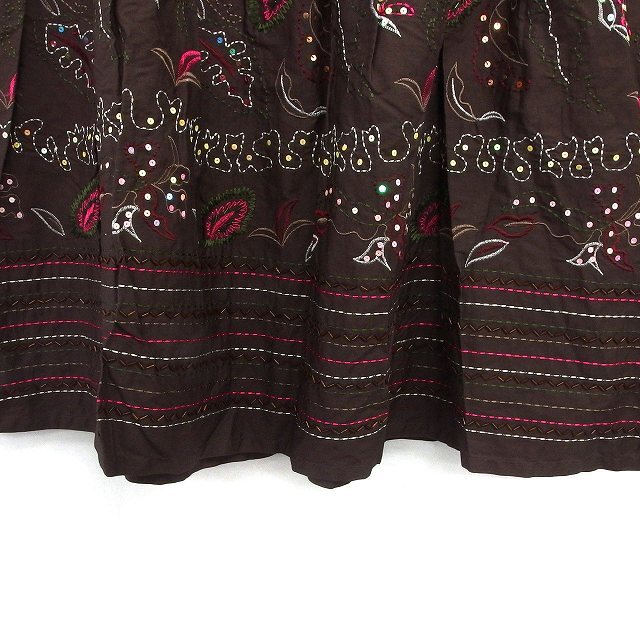 シネカノン Sinequanone 刺繍 フレア スカート ロング タック コットン 綿 スパンコール サイドジップ T38 茶 ブラウン /NT9 レディース
