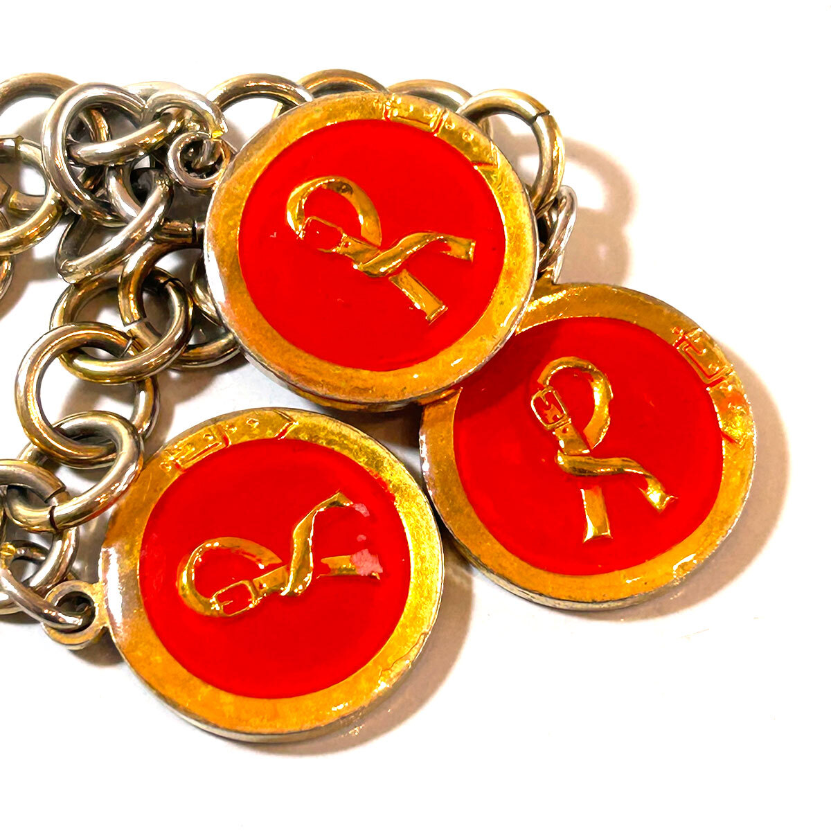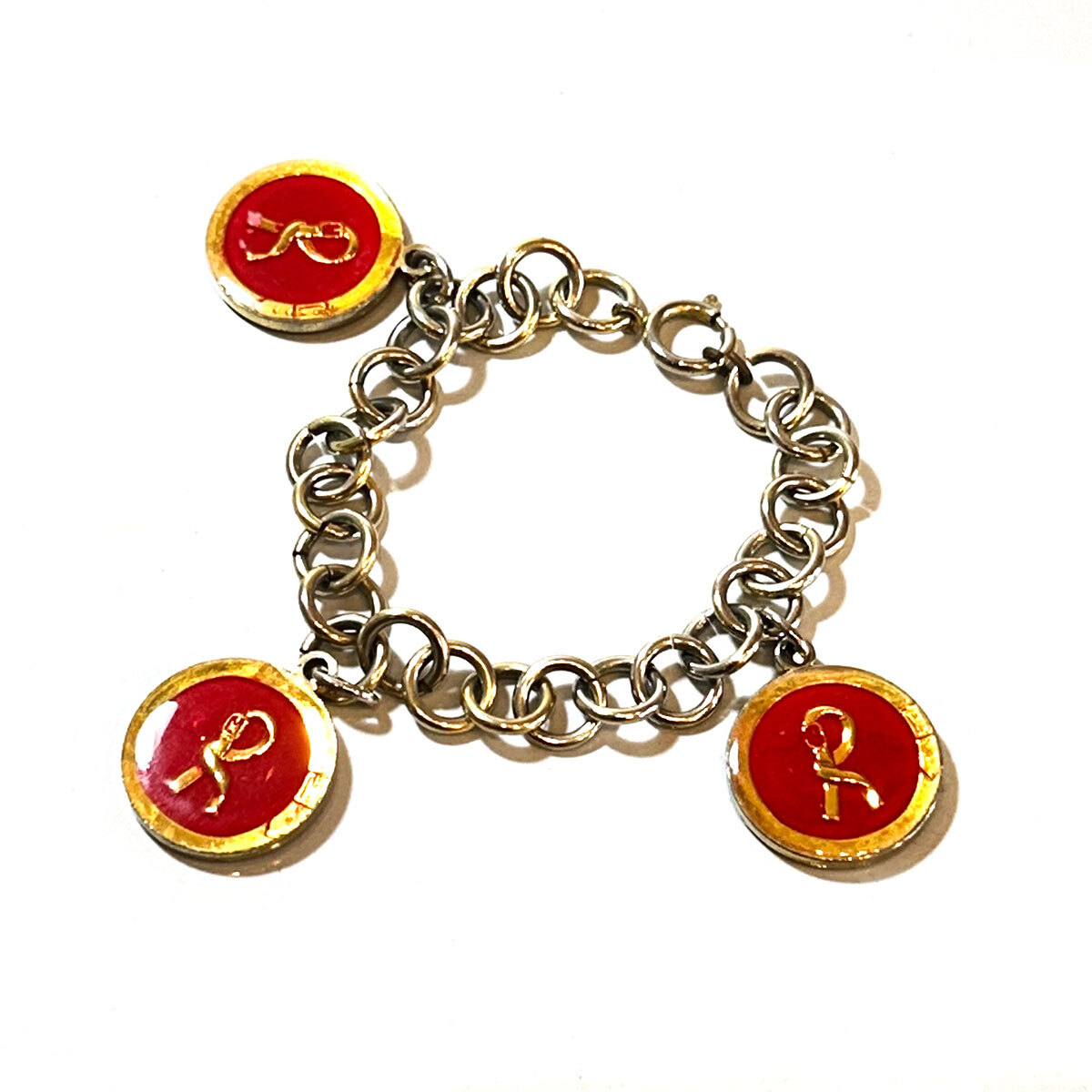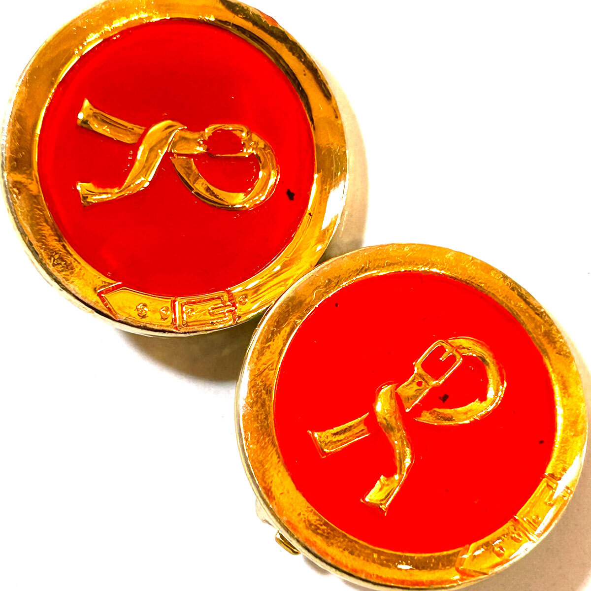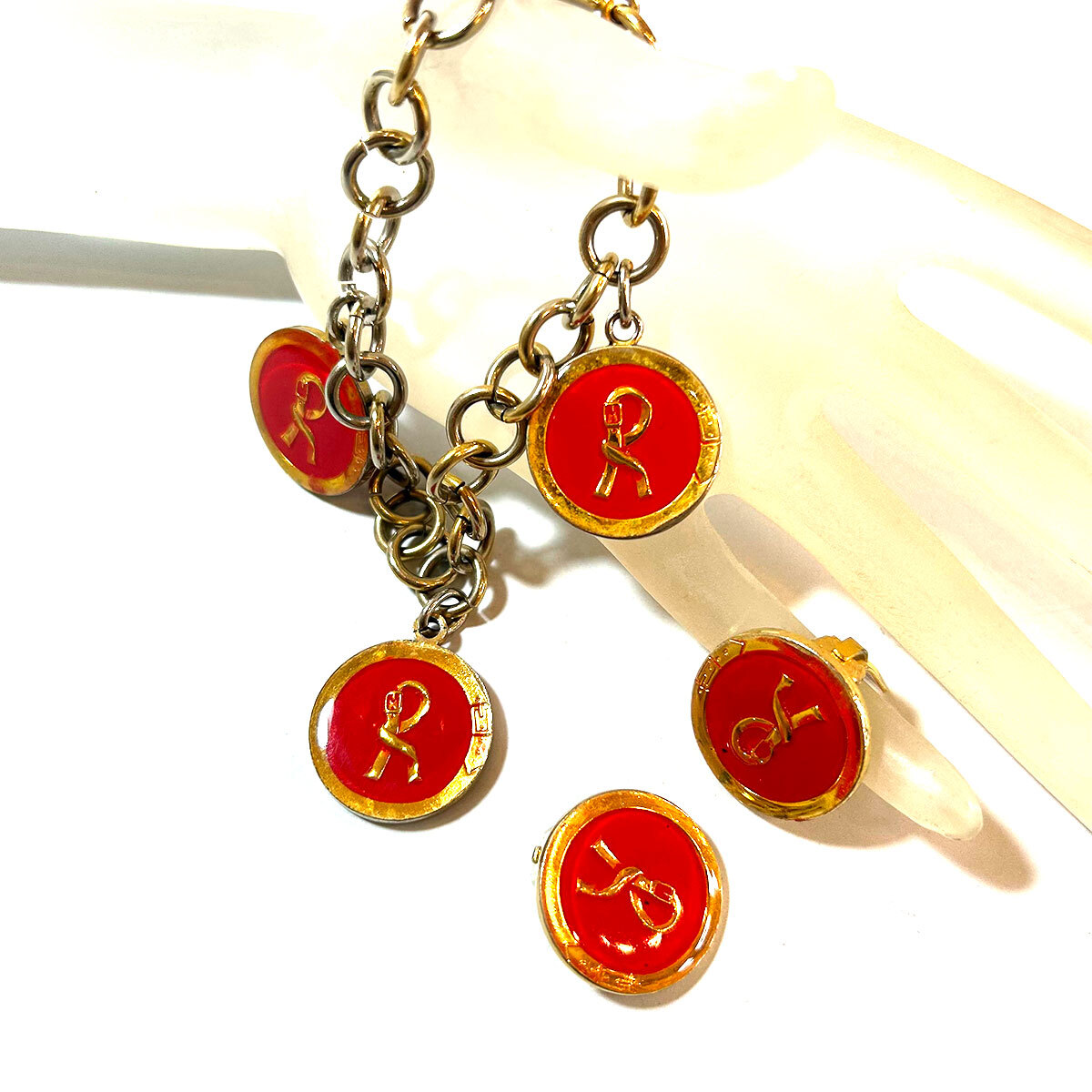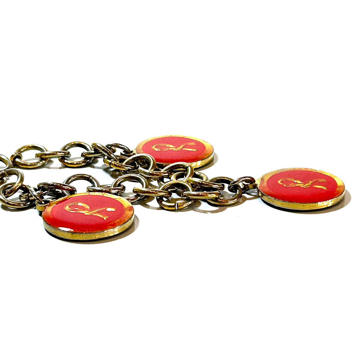 ★ROBERTA DI CAMERINO Vintage red enamel logo round charm bracelet & earrings set