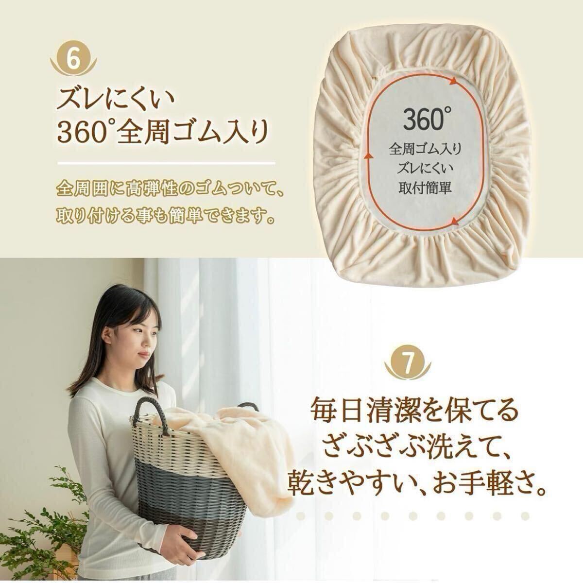 ベッドカバーは360°の弾力性のあるゴム製の全カバーで、マットレスを全面的にカバーします。しっかりとフィットするので、寝返りを打つときもズレにくく、安心して眠ることができます。