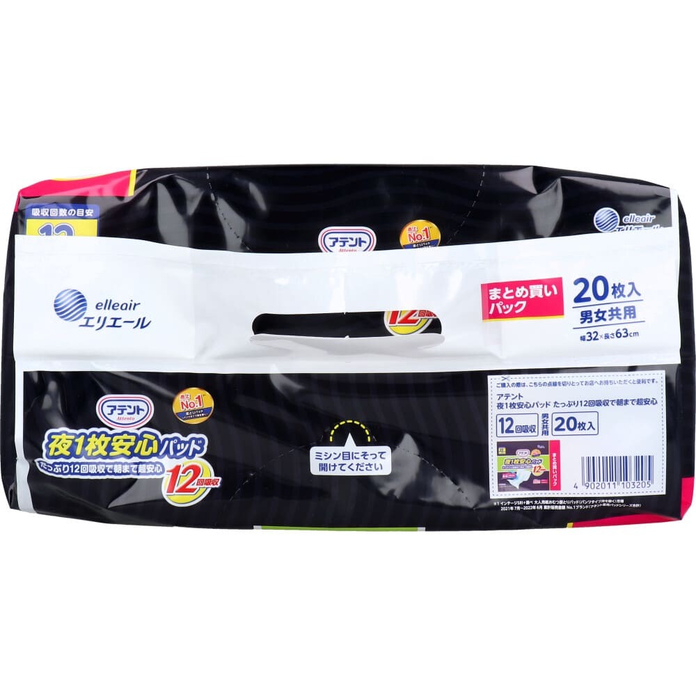 | 商品名 | アテント 夜1枚安心パッド たっぷり12回吸収で朝まで超安心 12回吸収 20枚 |