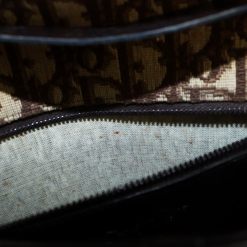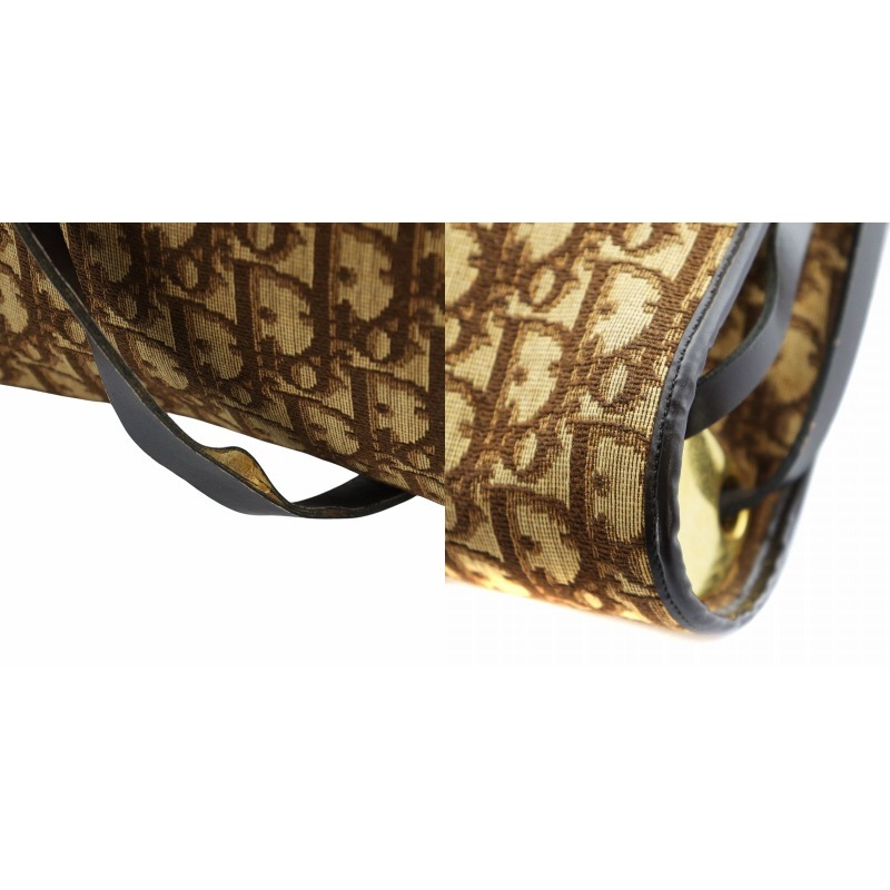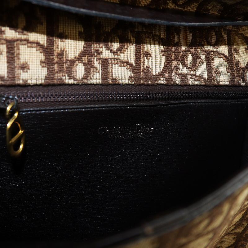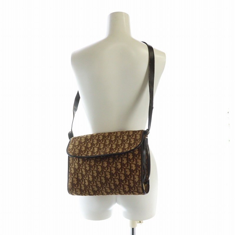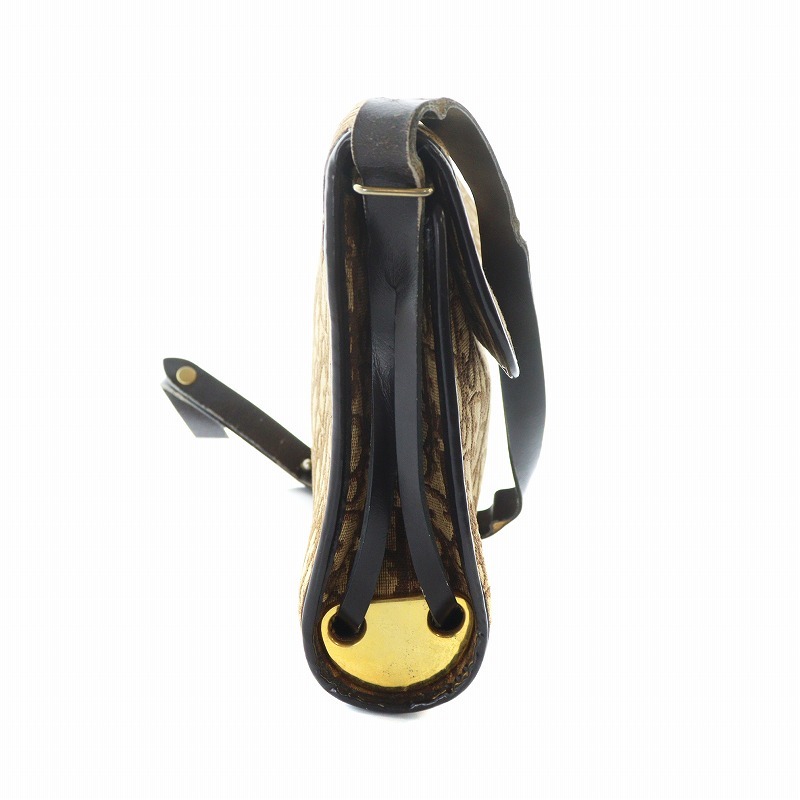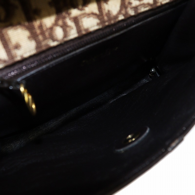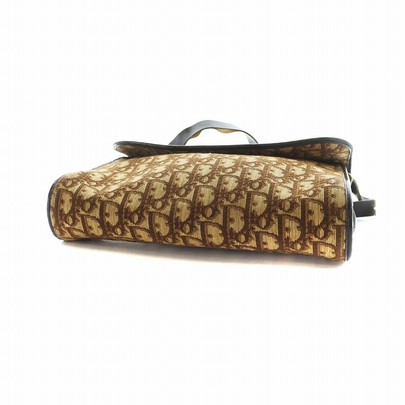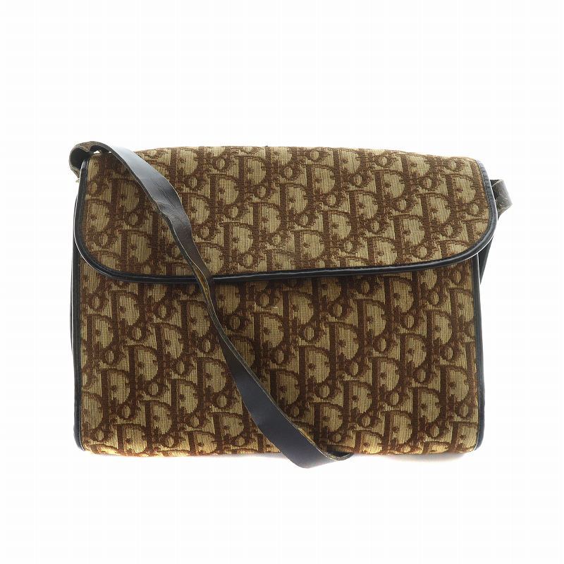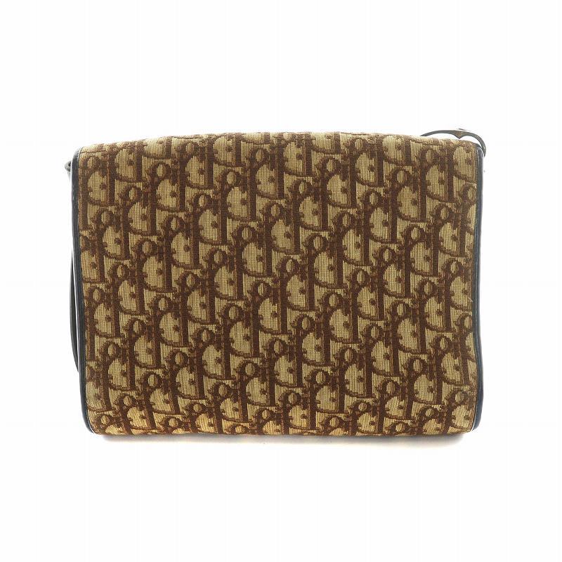 クリスチャンディオール Christian Dior ショルダーバッグ 斜めがけ ロゴ トロッター柄 総柄 フラップ キャンバス レザー 茶