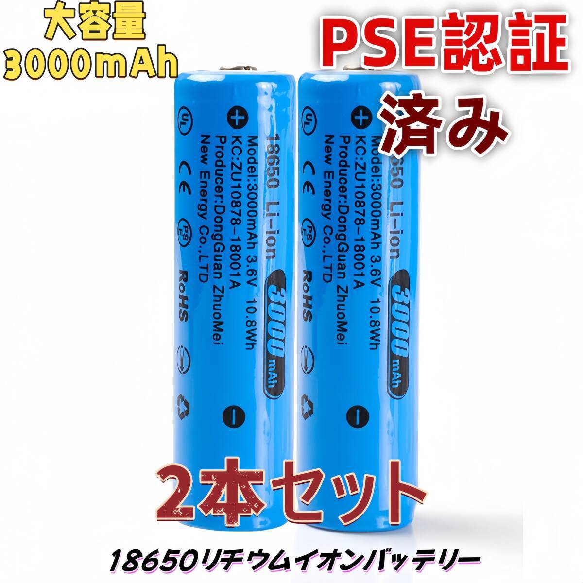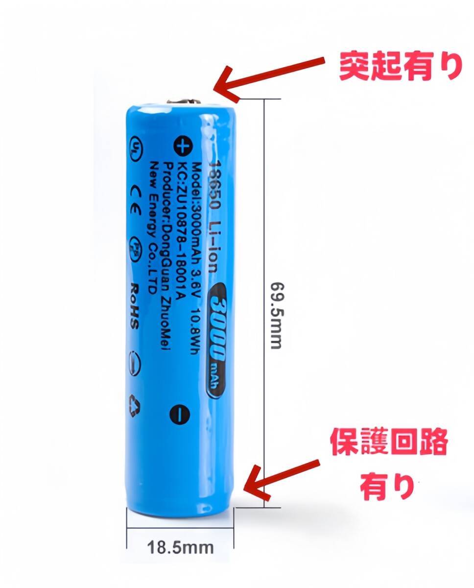 【2本セット】18650 リチウムイオン電池 バッテリー 大容量 3000mAh 3.6V 保護回路付 突起有り PSE認証済み