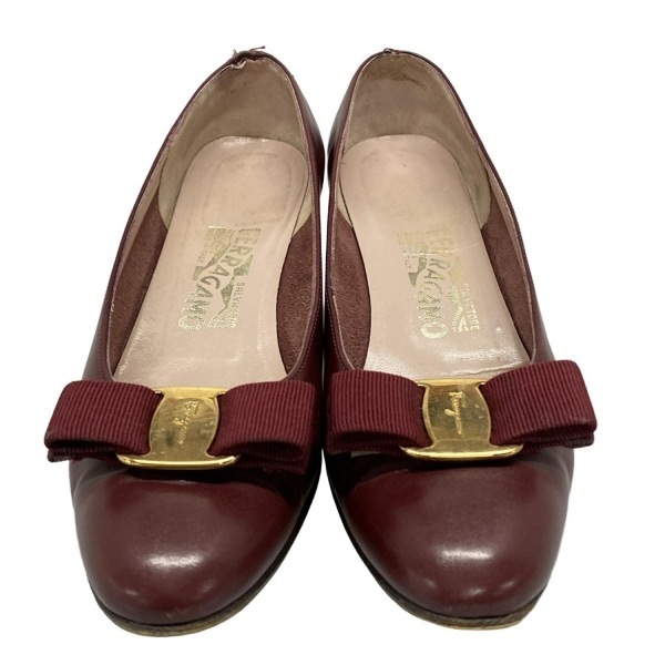 サルバトーレフェラガモ FERRAGAMO/SalvatoreFerragamo パンプス 5 1/2 C - レザー レッド レディース ヴァラ 靴