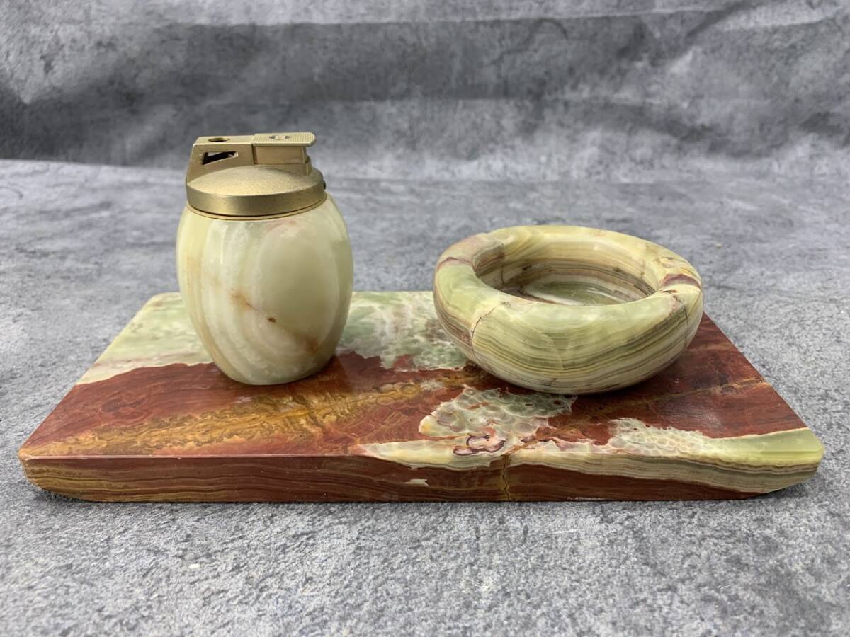 【 昭和レトロ 大理石 灰皿ライターセット 】ライター 灰皿 台座 レトロ アンティーク シガレットセット