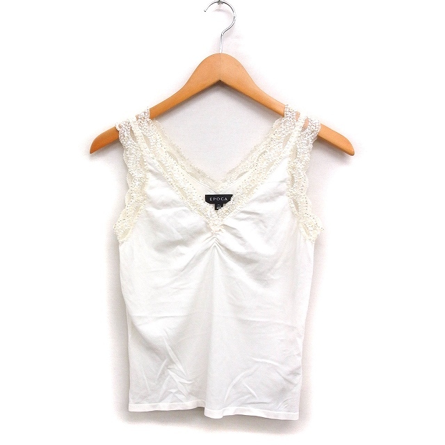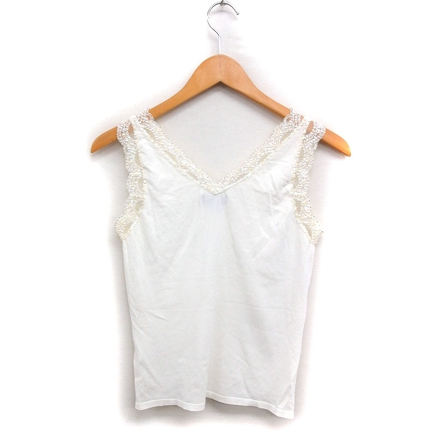 エポカ EPOCA ニット タンクトップ Vネック リボン レース ビーズ装飾 40 オフホワイト 白 /FT8 レディース
