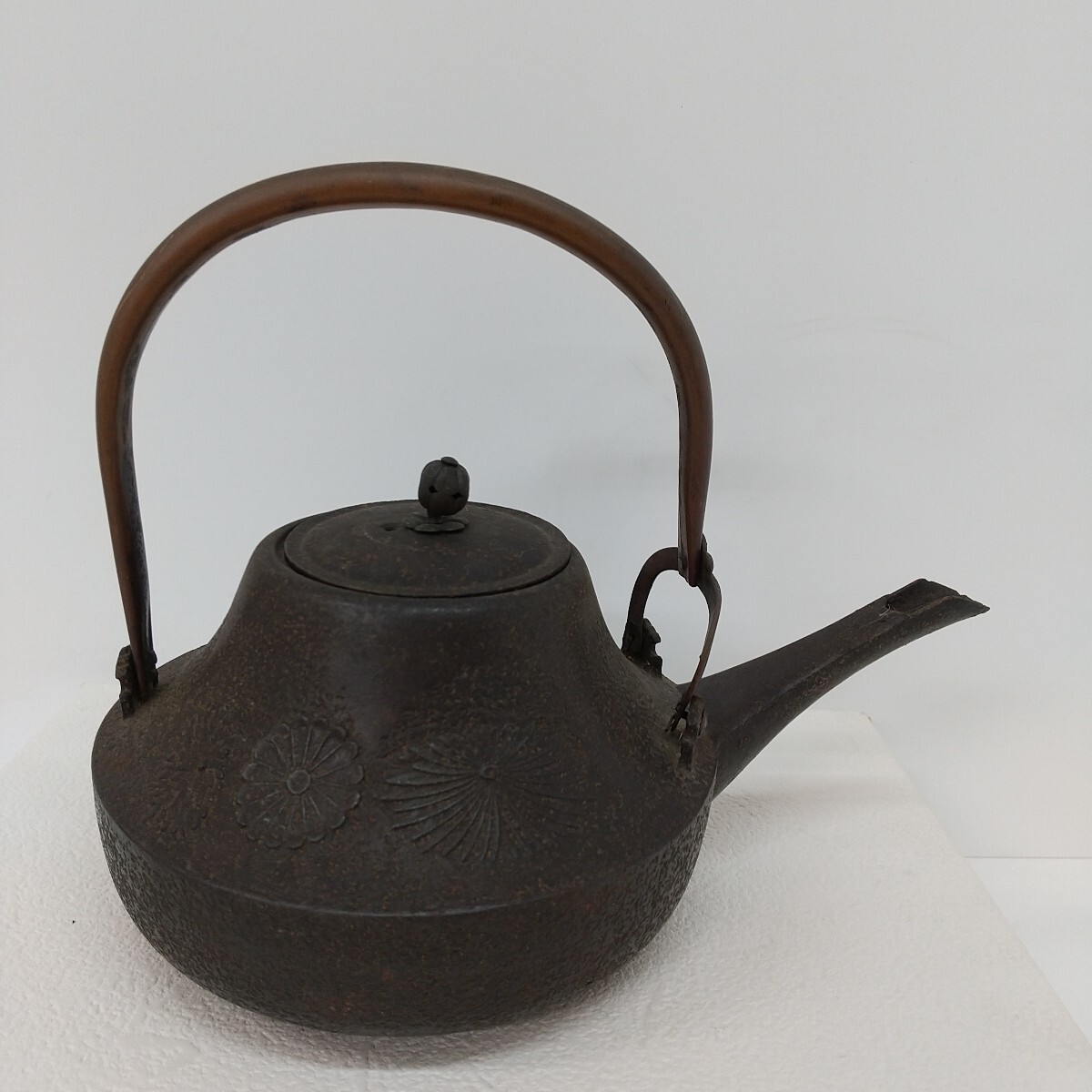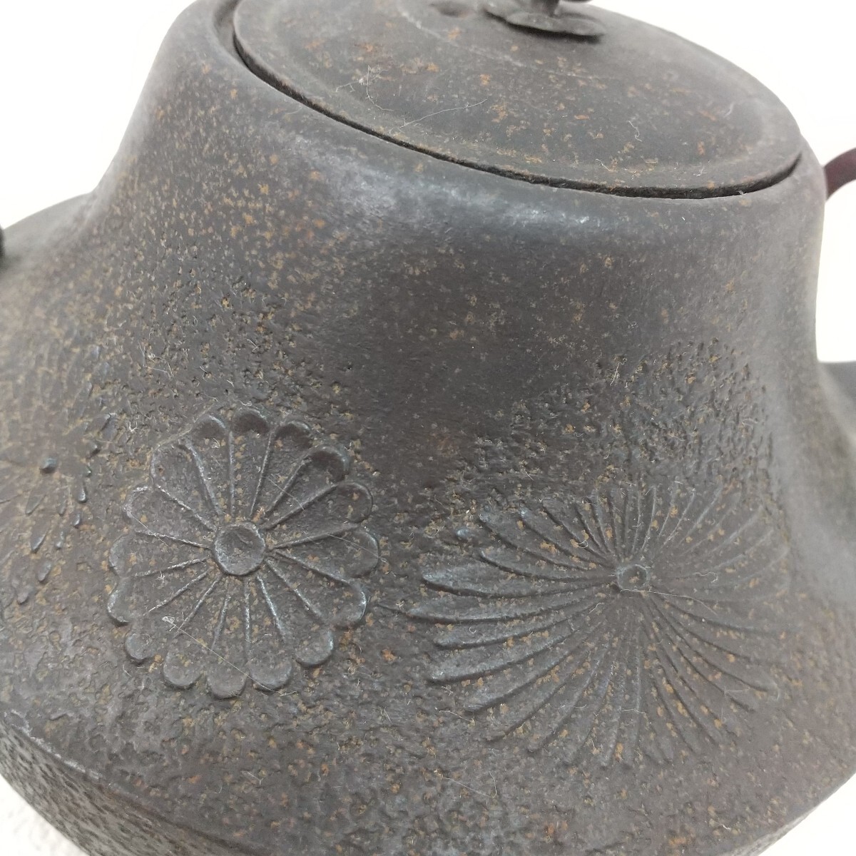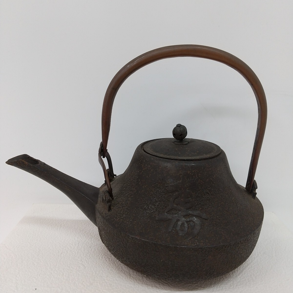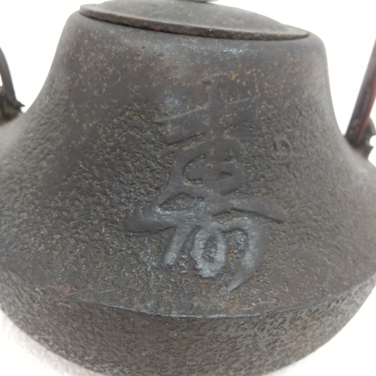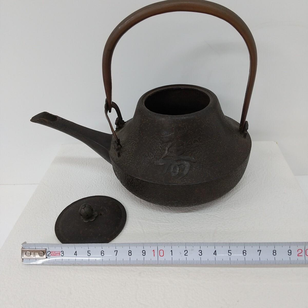 【商品名】 寿文字入り 鉄瓶 【メーカー】 - 【付属品】 画像のものが全てです。 【サイズ】 全幅 約20cm 高さ 約17cm 【状態】 長期保管の中古品です。 注ぎ口に割れあり(画像9) 経年劣化による小傷、スレ、色あせ、サビ汚れ・取れない汚れ等あります。 状態は画像でご確認をお願いします。 画像に写っているものが全てです。 ****************************************************** 管理番号411 |