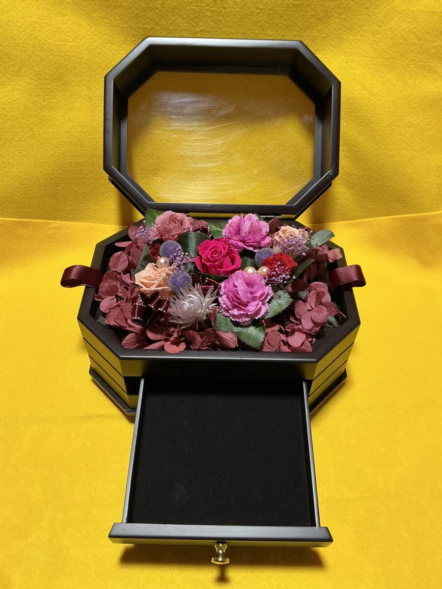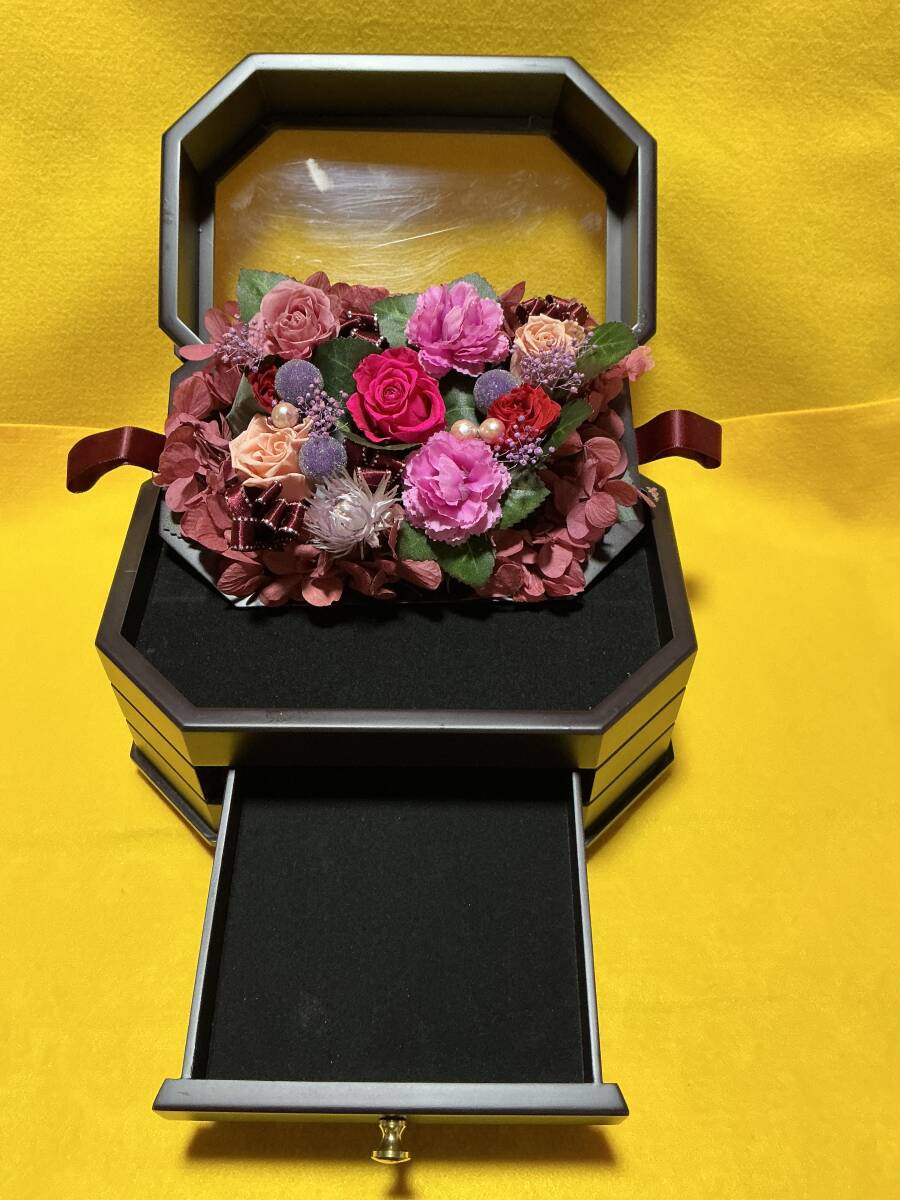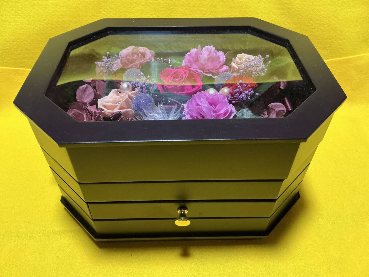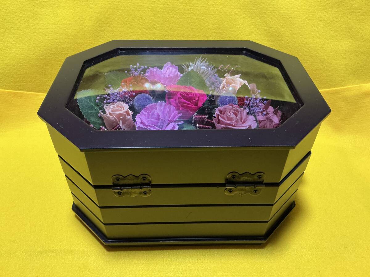 ジェリーケース プリザーブド オルゴール付(ON.OFFスイッチ付)自動ではありません。曲名はカノン タテ約17cm・ヨコ約23cm・高さ約13.5cm