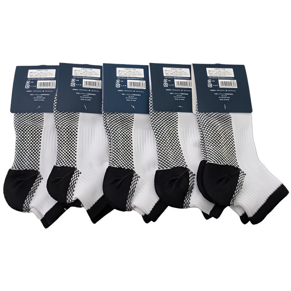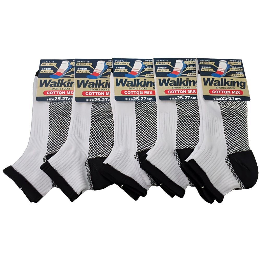 ショートソックス 白ベース 5足セット ウォーキング 足底パイル メンズ size 25-27cm 綿混素材