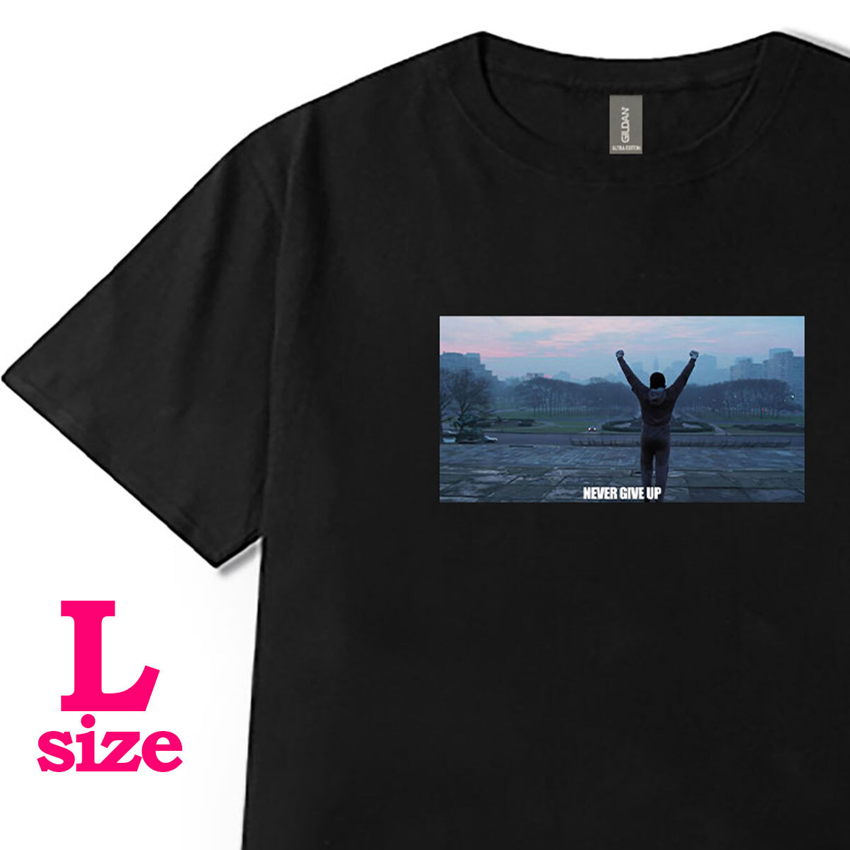 フォトプリント ロッキー 柄 Tシャツ シルヴェスター・スタローン 映画Tシャツ カジュアル 半袖 6.0oz コットン100% ユニセックス L