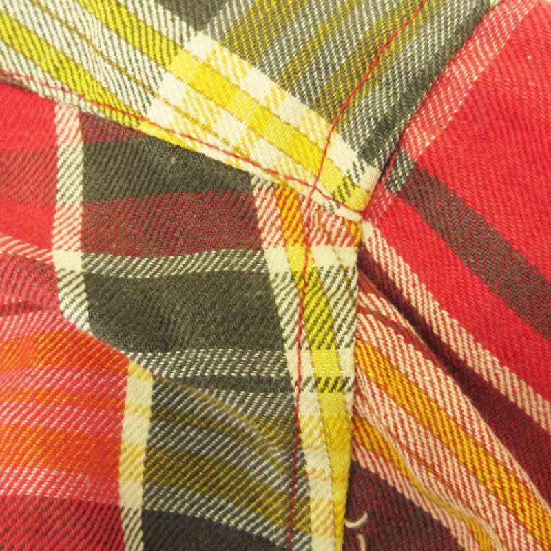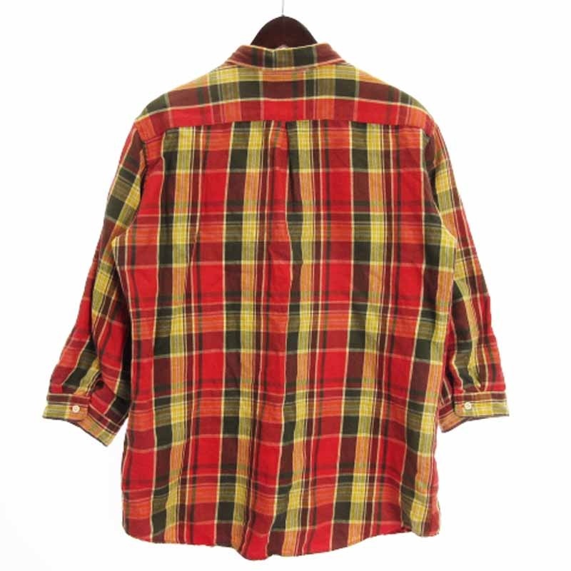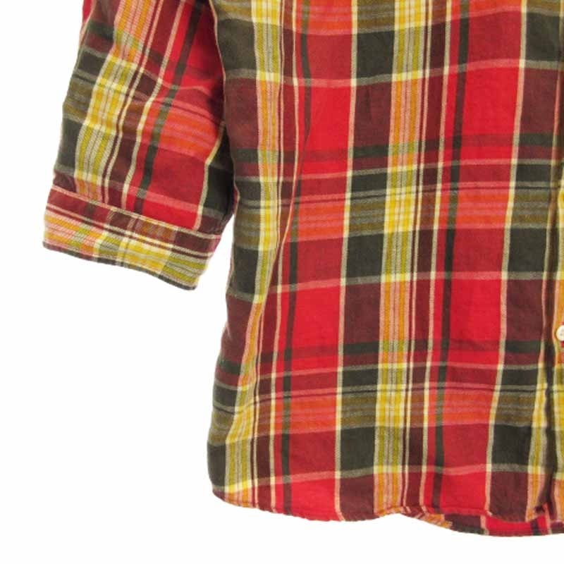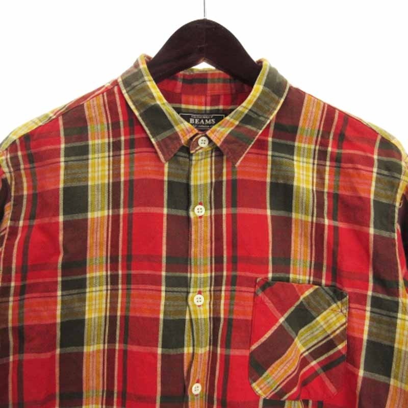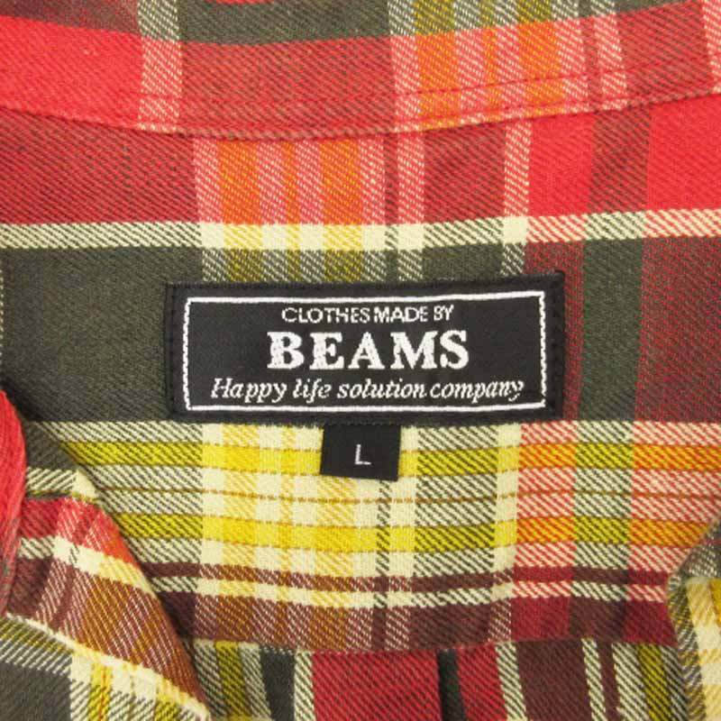 ビームス BEAMS シャツ 長袖 チェック コットン リネン 赤 レッド L メンズ