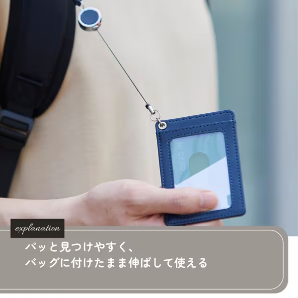 パッと見つけやすく、バッグに付けたまま伸ばして使えるグロワール リール付パスケース