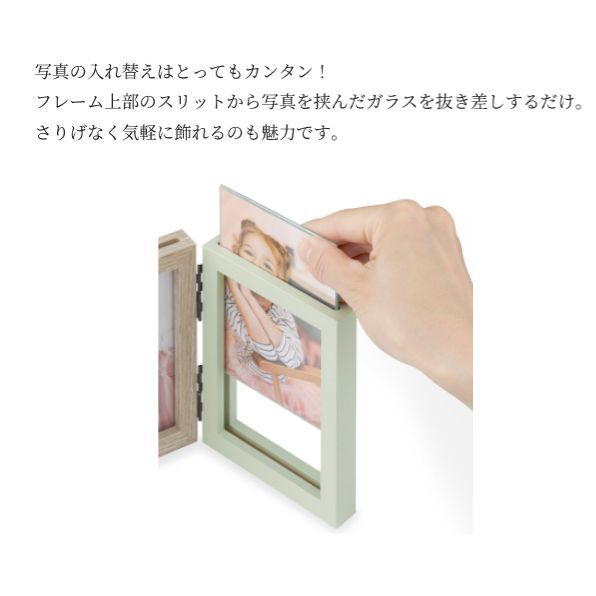 ◇コンパクトながら表裏合わせて4枚の写真を飾ることができる、