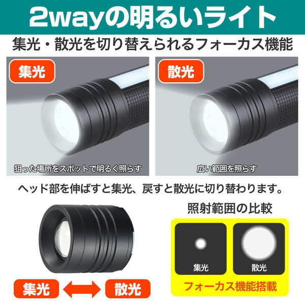 ●LEDライトは集光・散光(ワイドモード)を切替えできるフォーカス機能