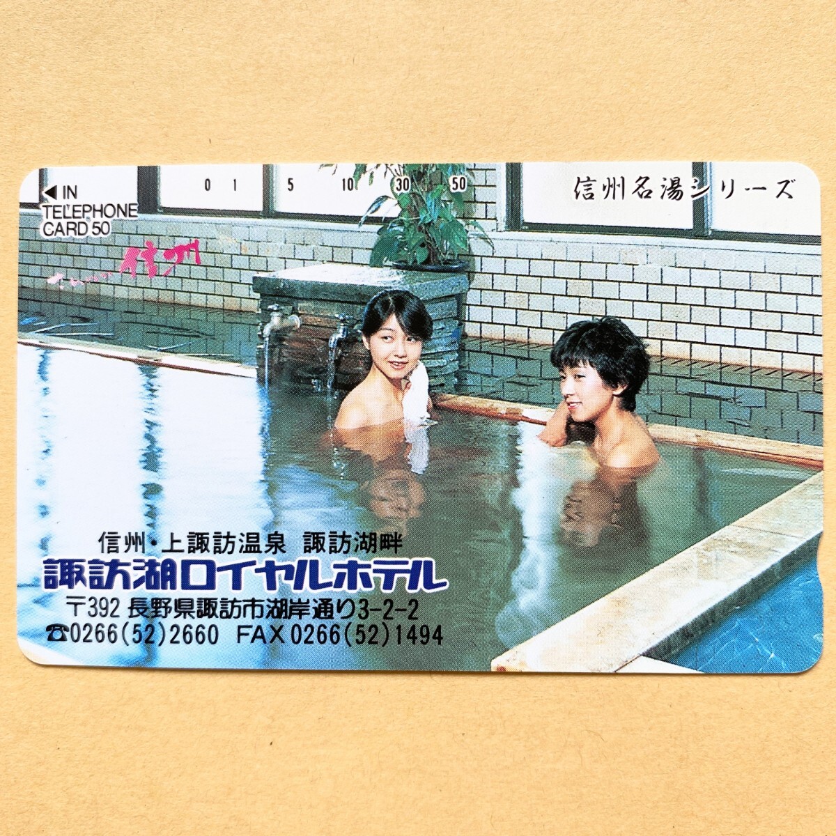 【未使用】温泉テレカ 50度 信州・上諏訪温泉 諏訪湖畔 諏訪湖ロイヤルホテル 信州名湯シリーズ