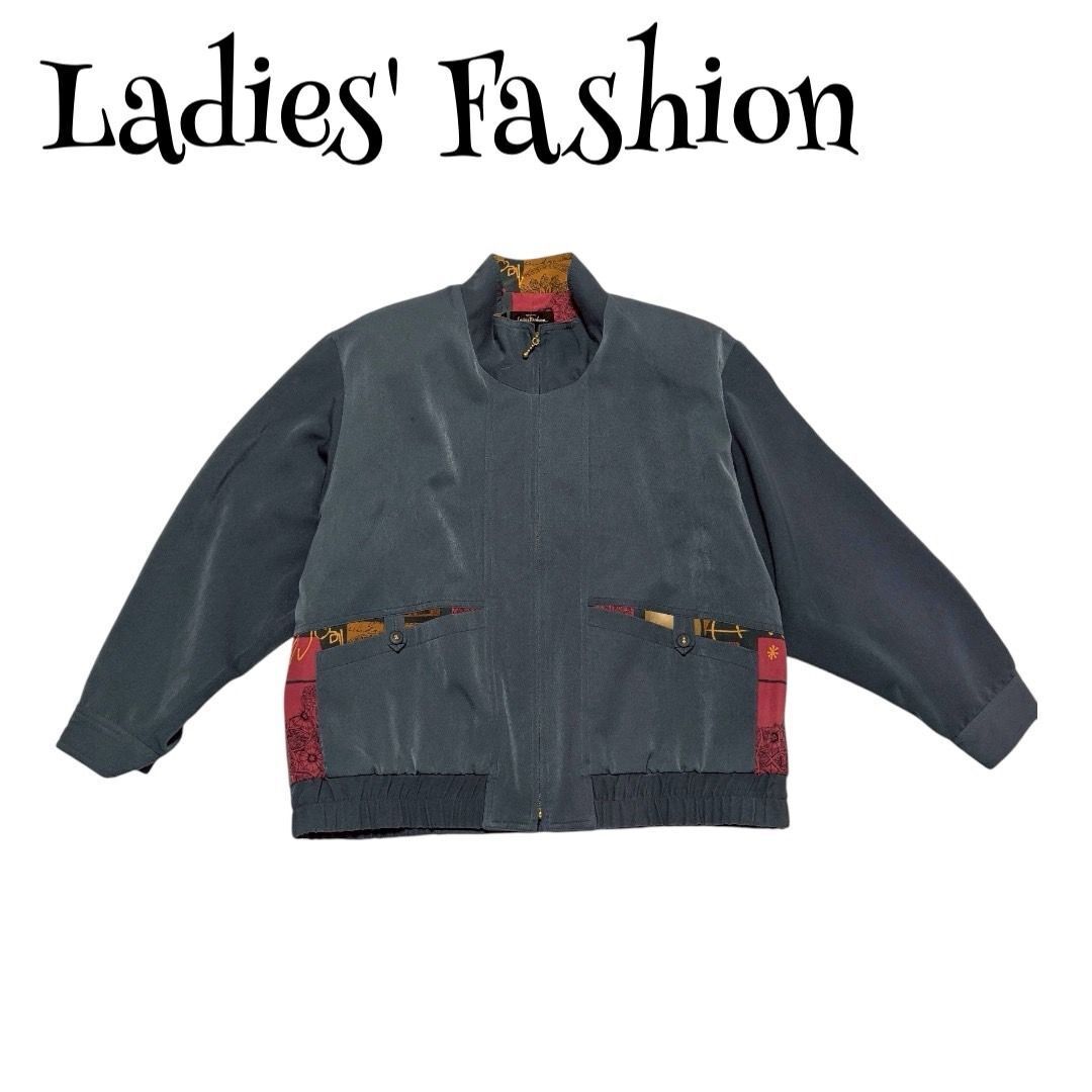 ヴィンテージ 古着 レトロ ジャンパー (L) 派手裏地 フルジップ