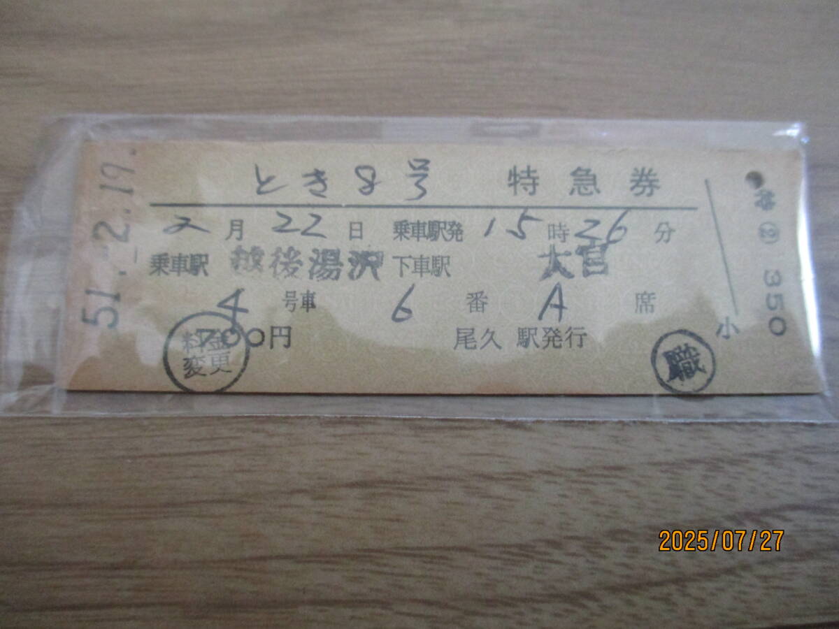 特急とき8号の特急券になります。51/2/19購入品で座席指定は4号車6番A席の特急券になります。古い品物になりますので汚れて等があります。現状渡しになりますので画像にて判断していただき返品・クレームの無い様にお願いします。