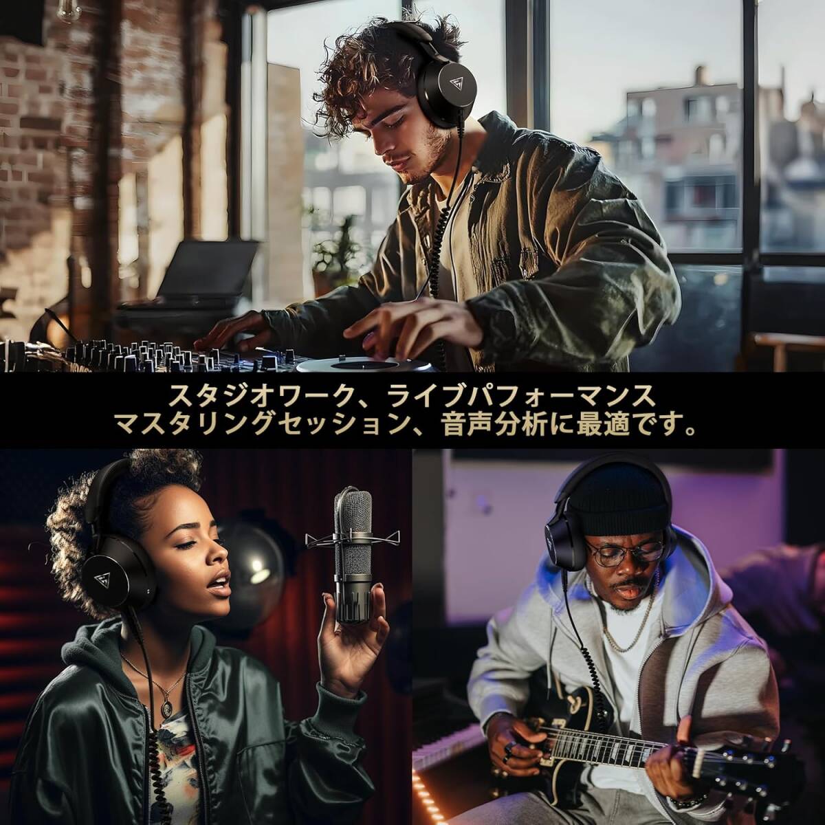密閉型構造により外部ノイズをしっかり遮断し、録音・DTM・ミキシングはもちろん、DJプレイやエレキギターの練習、配信など幅広い用途に対応するプロ仕様のモニターヘッドホンです。
