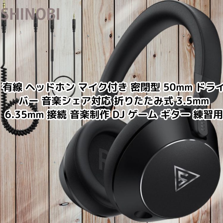 有線 ヘッドホン マイク付き 密閉型 50mm ドライバー 音楽シェア対応 折りたたみ式 3.5mm 6.35mm 接続 音楽制作 DJ ゲーム ギター 練習用