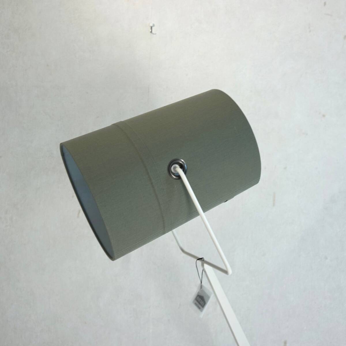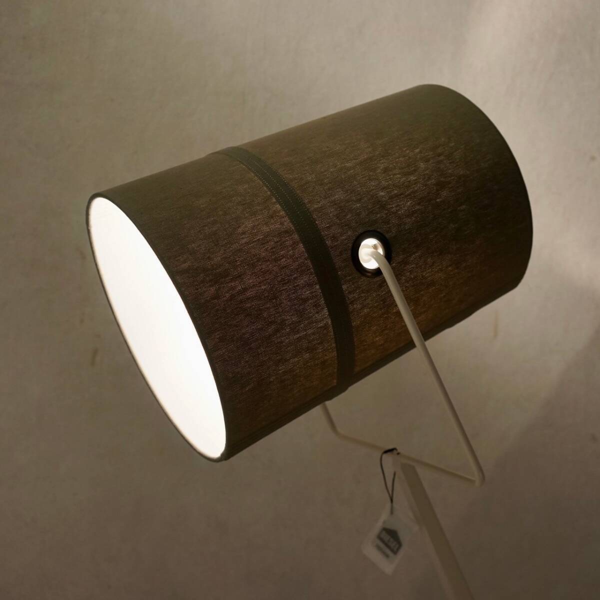ランプシェードにはキャンバス地のような素材感が活かされ、工業的かつカジュアルな雰囲気を演出。