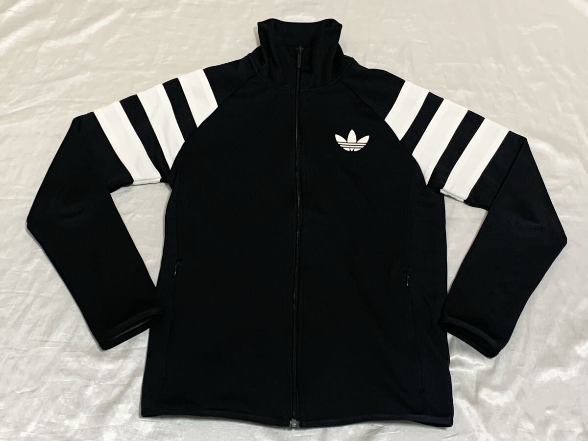 アディダスオリジナルス トレフォイル トラックジャケット ブラックホワイト 3本ラインです。