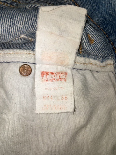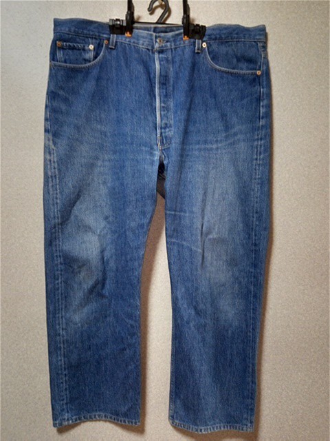 有難うございます。サイズW44 ウエスト平置き約54cm,レングス約72cm,裾幅約23.5cm,総丈約104cmです。オリジナルUSA製 リーバイス501ビッグサイズデニムです。ボタン裏555 状態は概ね画像通りになります。全体的に程好い色落ち感でうっすらヒゲの表情やサイドシームの開いた状態のアタリ感等上品な仕上がりです。裾上げですがしっかりアタリがございますので問題無いかと思います。股部分にはタタキリペアが施されていますので普段使いで気軽にご使用出来ます。レターパックプラス送料無料ですのでよろしくお願い致します。