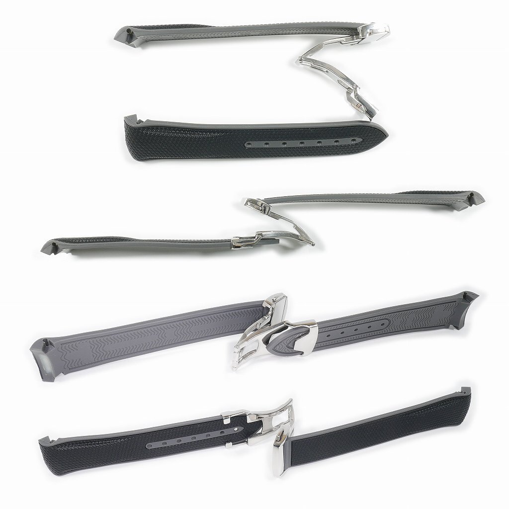 ・ブラック&グレーのラバーベルトにシルバーのDバックルです。