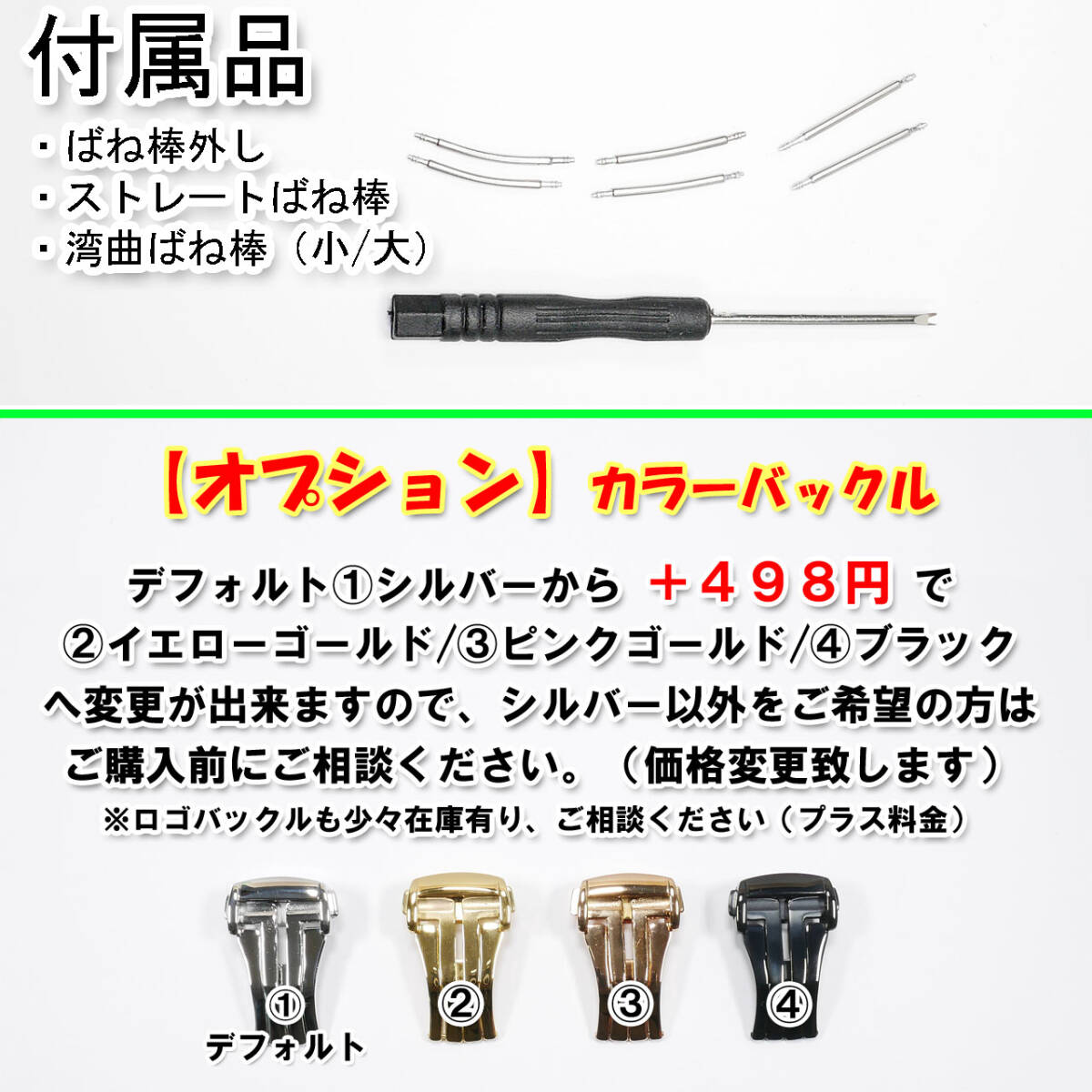 ・バックルカラーを「+498円」にて「②イエローゴールド/③ピンクゴールド/④ブラック」へも変更が出来ますので、変更希望の方ご購入前に在庫確認をお願い致します。(価格変更致します)