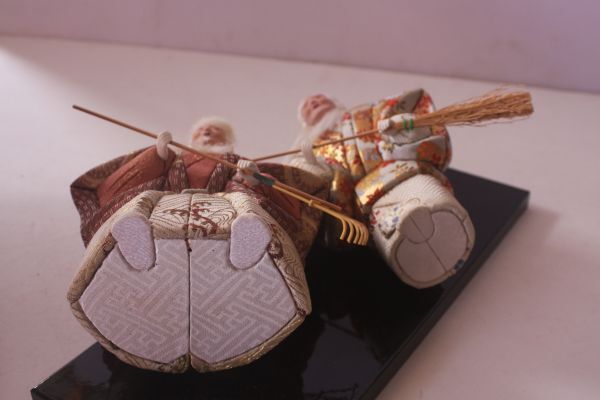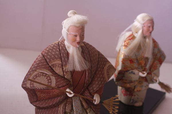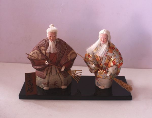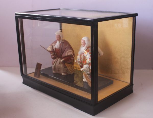 高砂人形 ガラスケース付き 江戸木目込み 八千代高さ ケースサイズ:約47.5×28×H36㎝/24N11.21-94