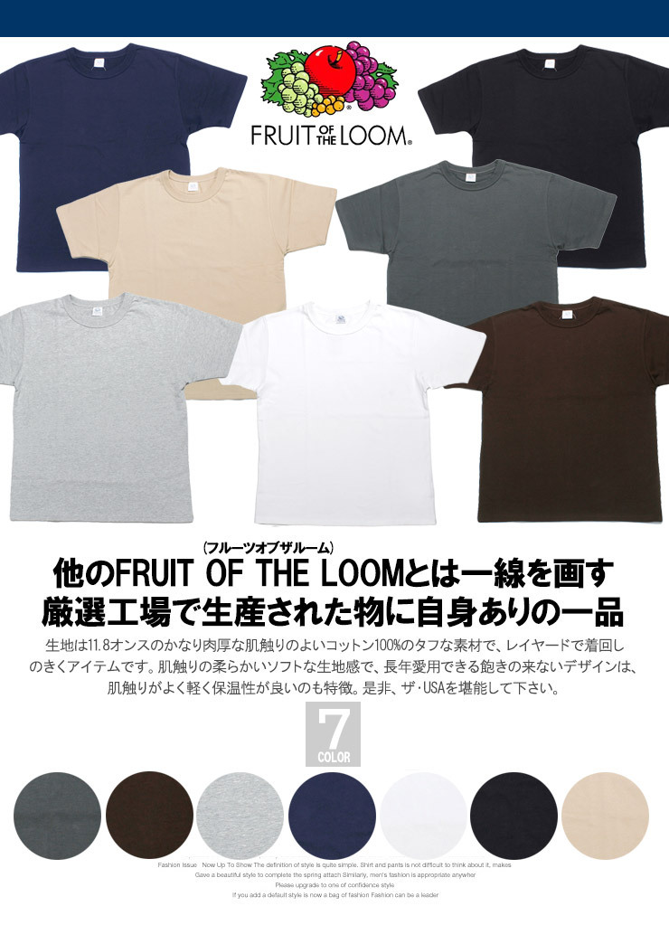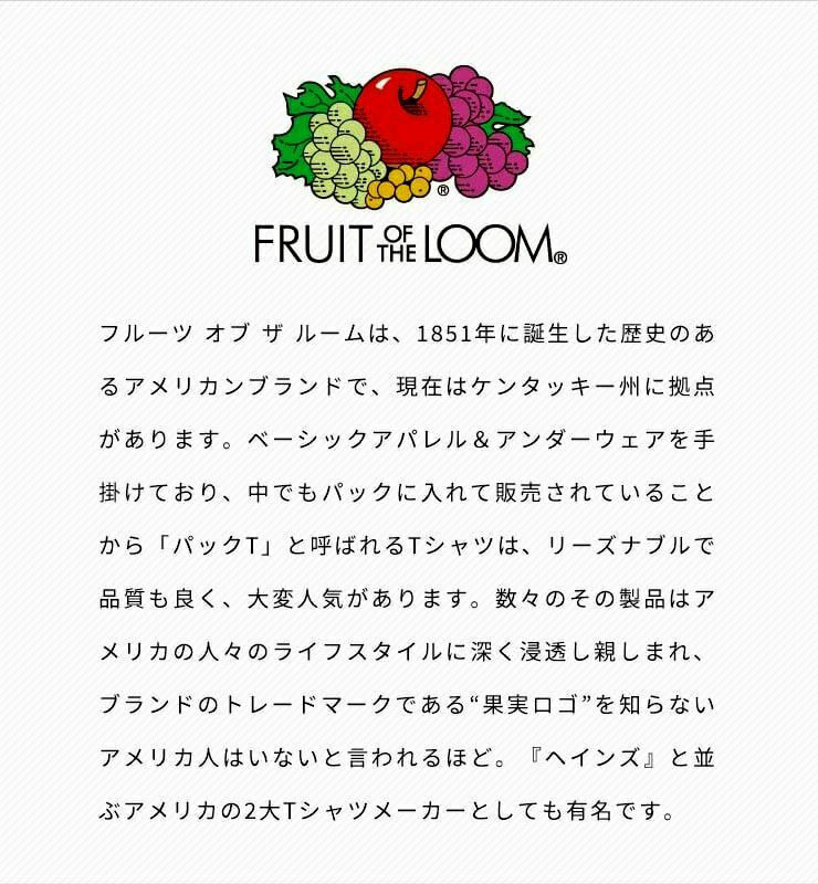 | 商品説明 | FRUIT OF THE LOOM(フルーツオブザルーム)から、ヘビーウェイトクルーネック無地Tシャツの登場です。 |